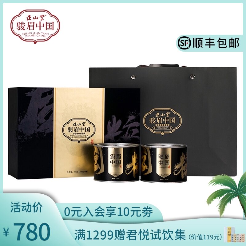 Zhengshan Hall Junmei Китайская национальная церемония Церемония коробка десять макияж чернокожие чайные чайные подарки 200G