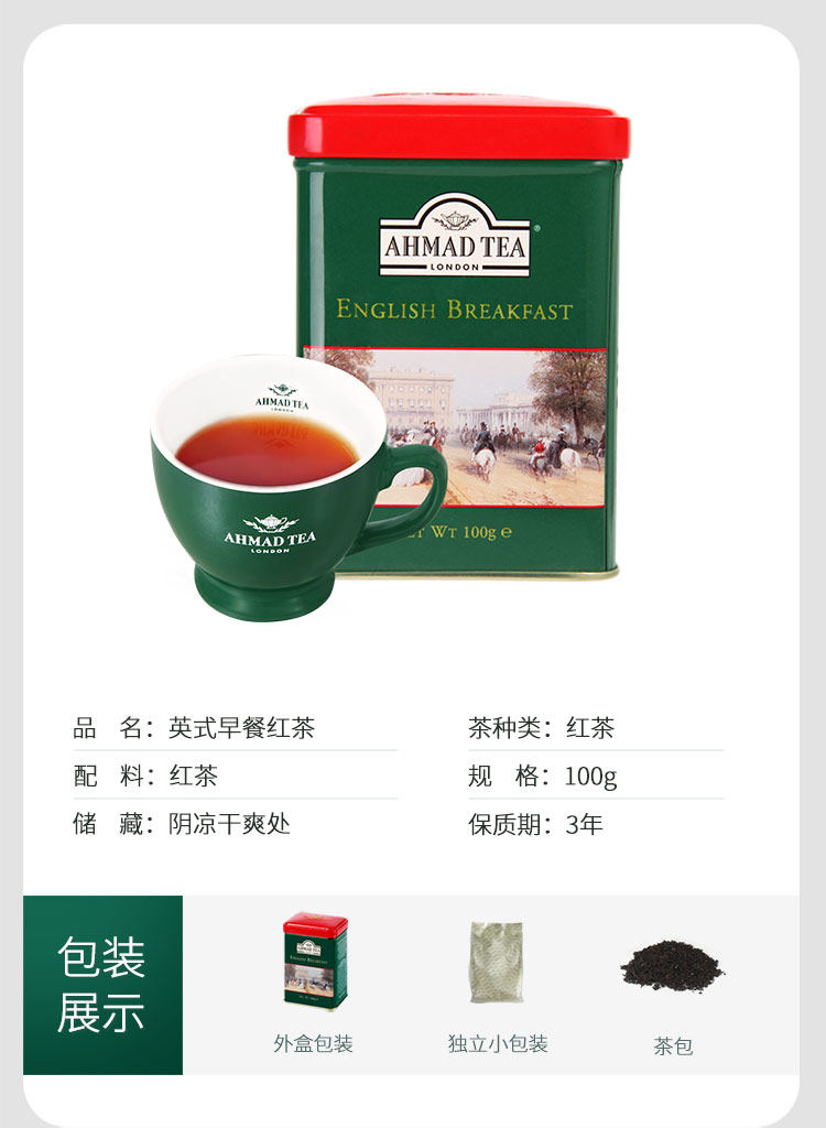 Импортный ахмад чай яман чай британский завтрак черный чай Bulk 100G Консервированный британский послеобеденный чай