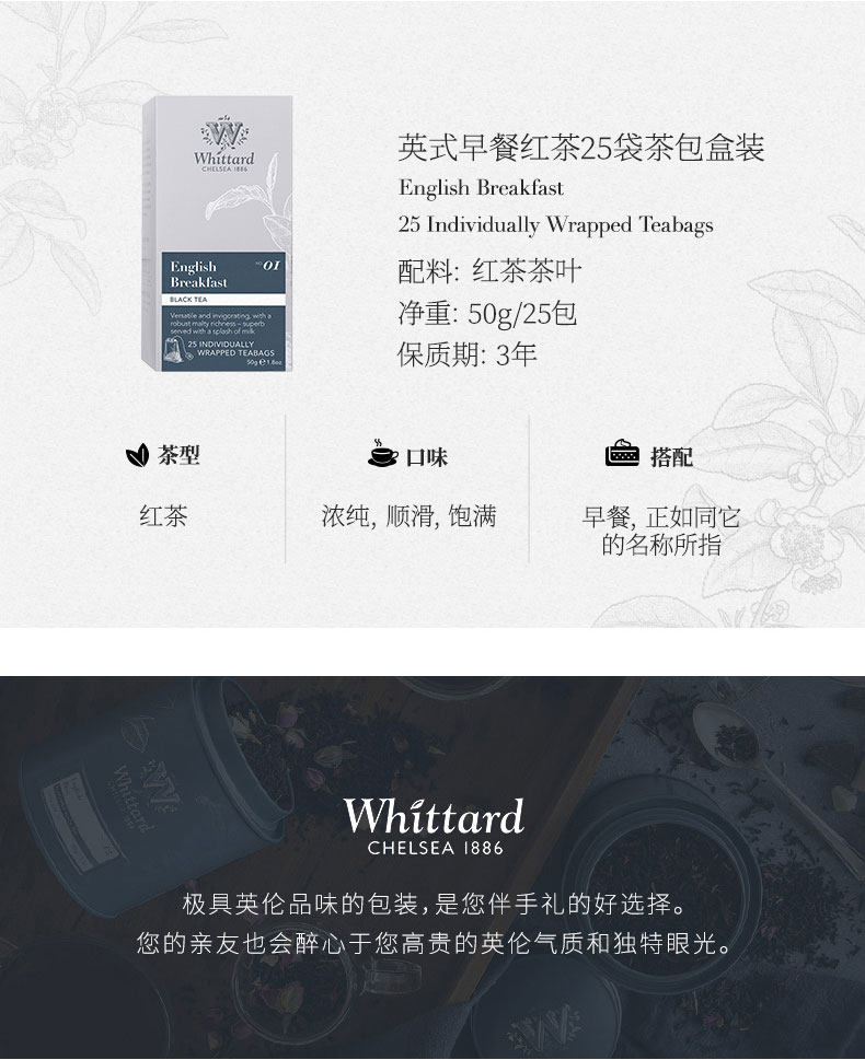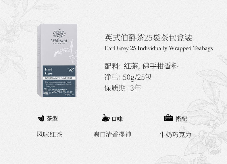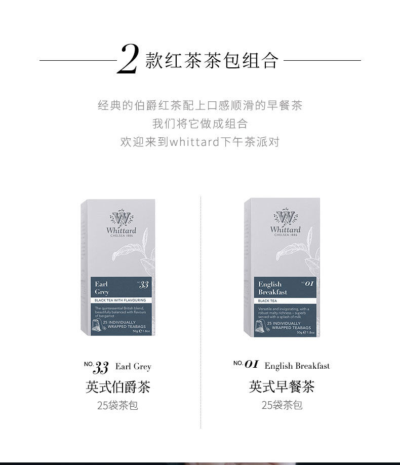 Whittard британский граф черный чай+чай для завтрака 25 мешков с черным пакетом чая*2 коробки с пузырьковым чаем чай