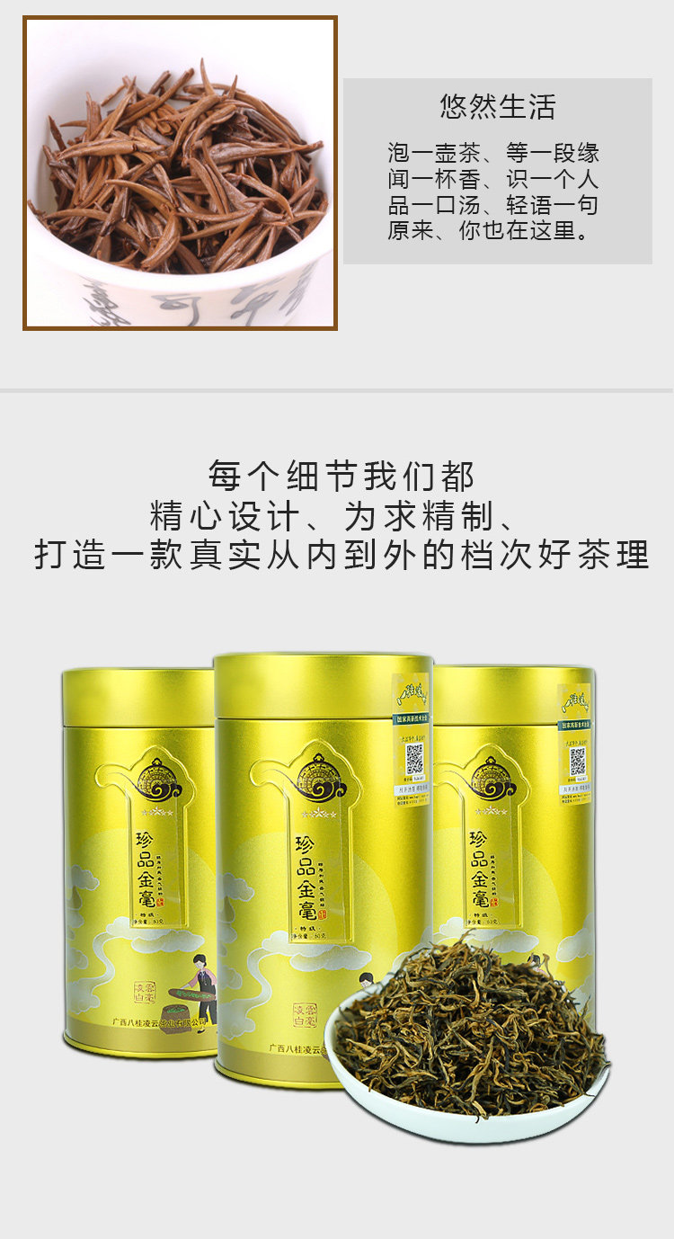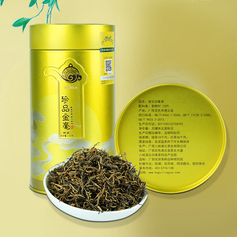 Guangxi Bagui Lingyun Baihao Черный чайный лист Mingqianchun чайный чайный альпийский экологический джинхао одинокий бутон медовый вкус тип 80G