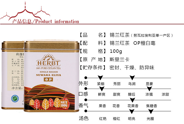 Herbt Herbt Sri Lanka Импорт чай 100 г консервированного кейлонского черного чая в офис
