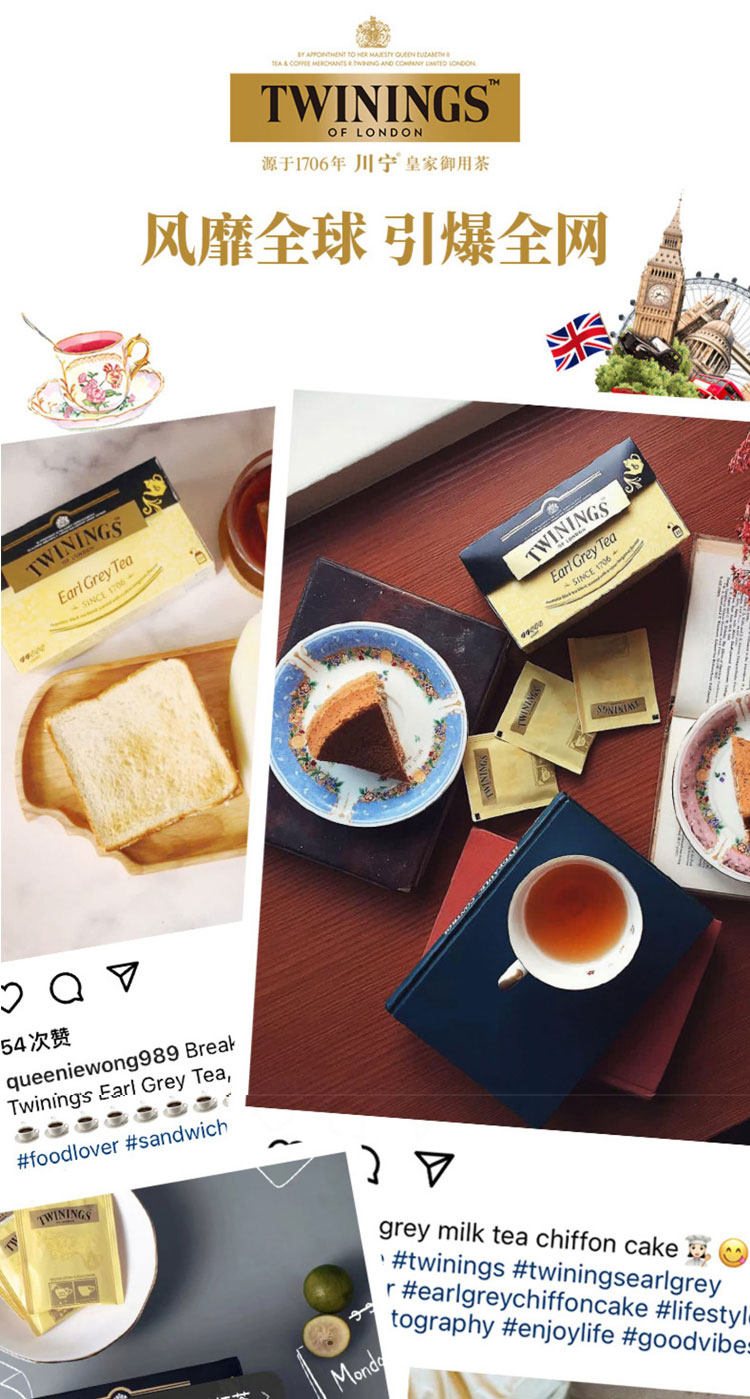Twinings британский богатый черный чай в пакетиках Earl Grey, 2 г * 10 пакетиков, импортированный британский черный чай в пакетиках, чайный пакетик