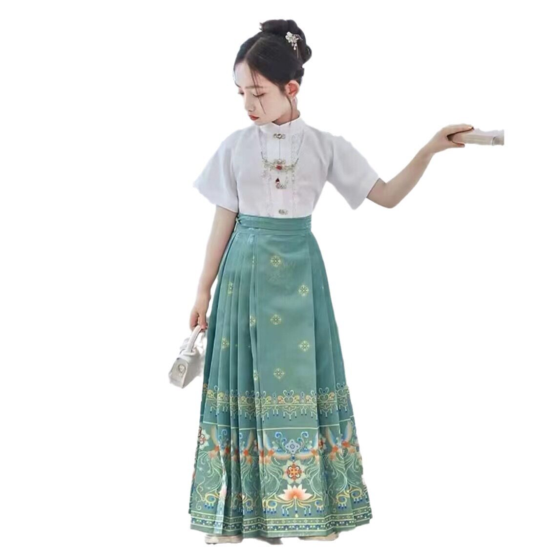 Ханьфу, детский комплект, летняя юбка в складку, китайский стиль, плиссированная юбка