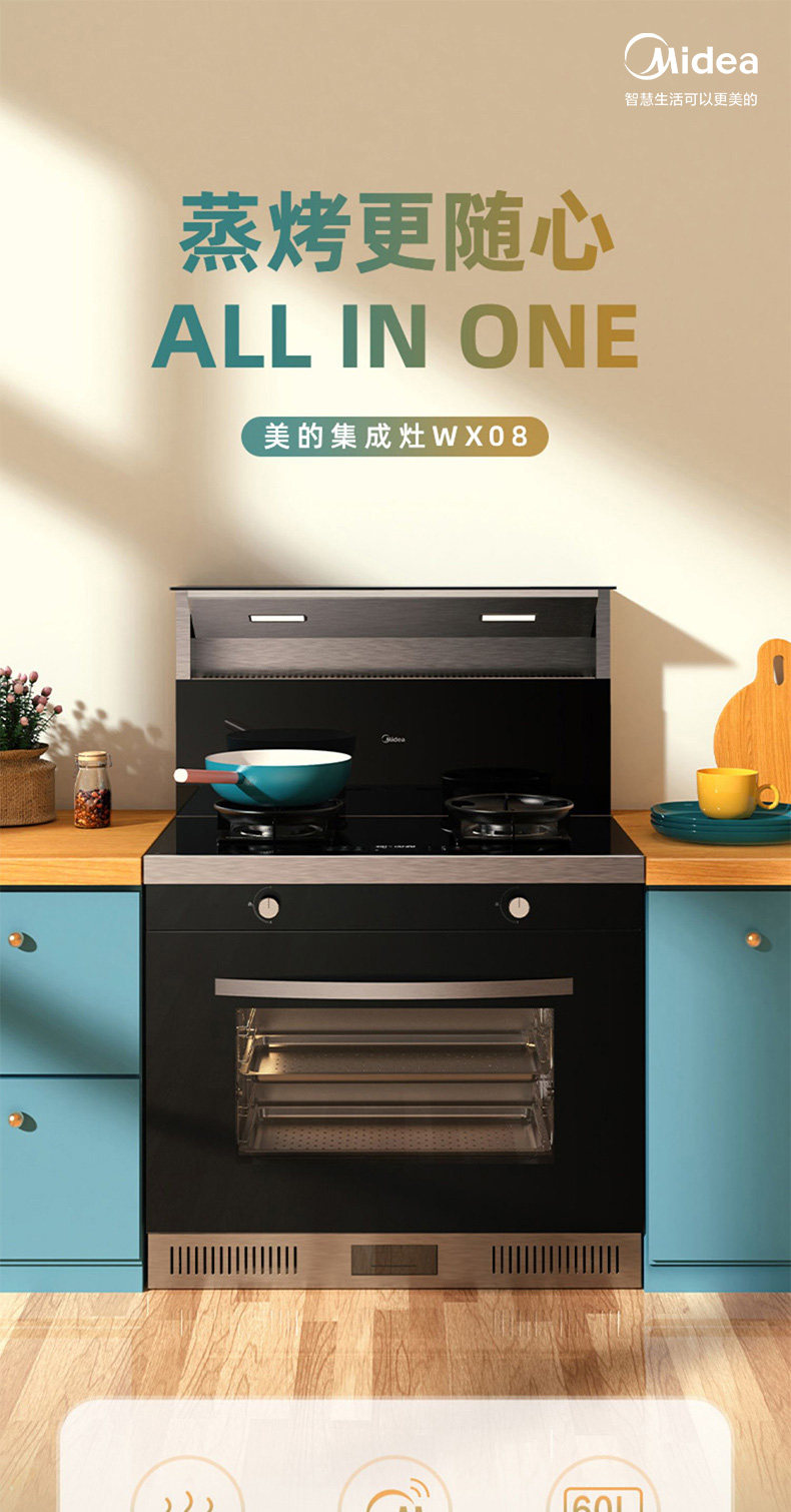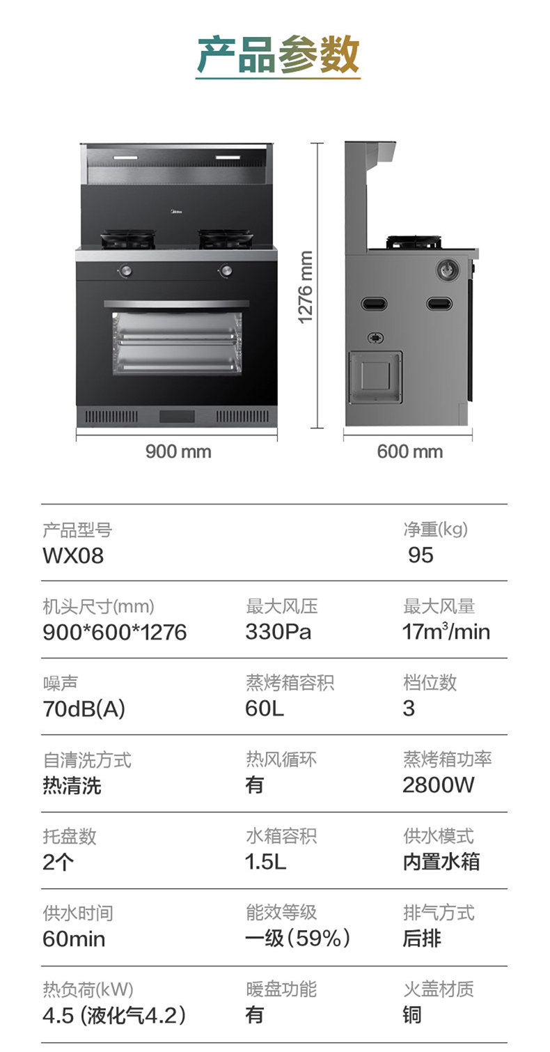 MIDEA WX08 Интеллектуальная интегрированная плита насосная насосная насосная сжигание газовая плита на пару и на гриле интегрированная интегрированная интегрированная плита Домашняя всасывание