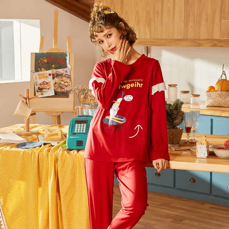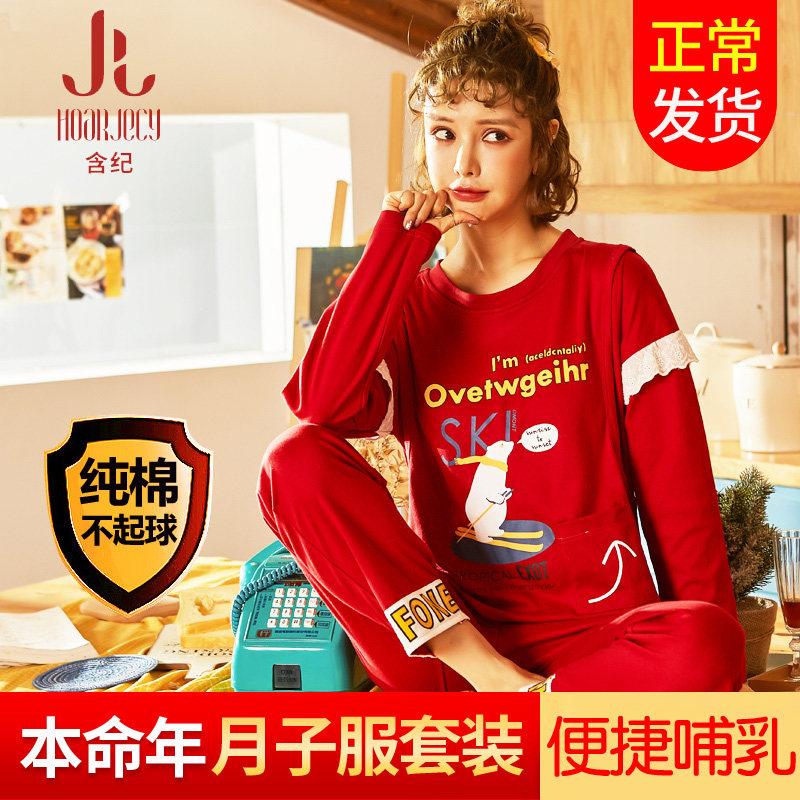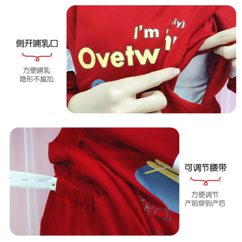 Красная осенняя хлопковая пижама, регулируемый послеродовой тонкий оберег на день рождения для беременных для кормящих грудью