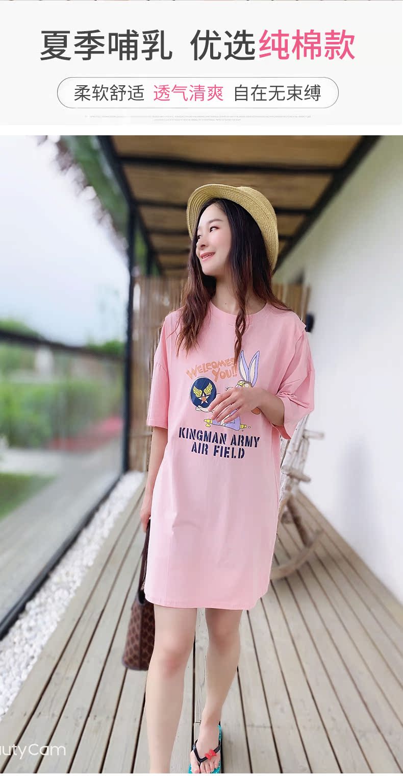 Летнее платье для выхода на улицу для кормящих грудью для беременных, юбка, модная футболка, короткий рукав, большой размер
