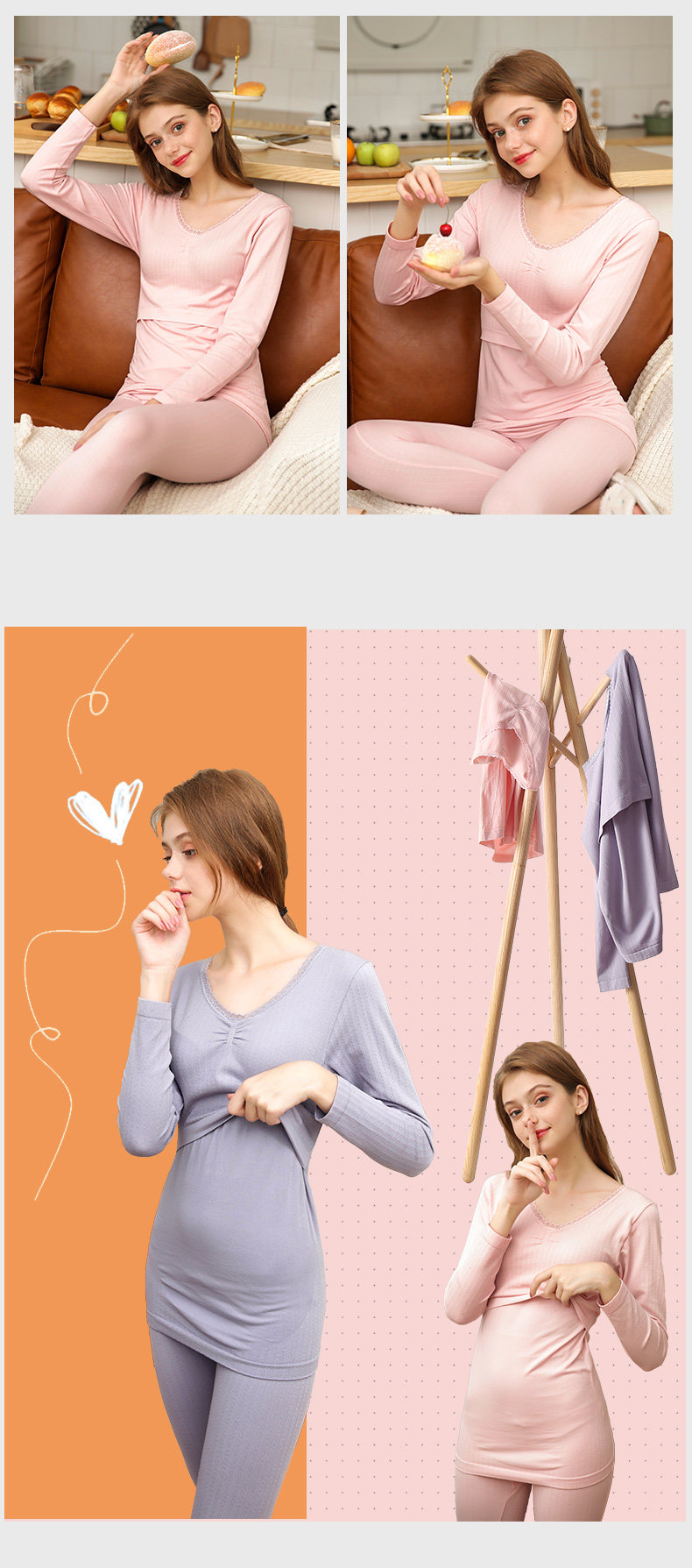 芬腾 Термобелье для кормящих грудью, демисезонный удерживающий тепло комплект, нижнее белье, пижама