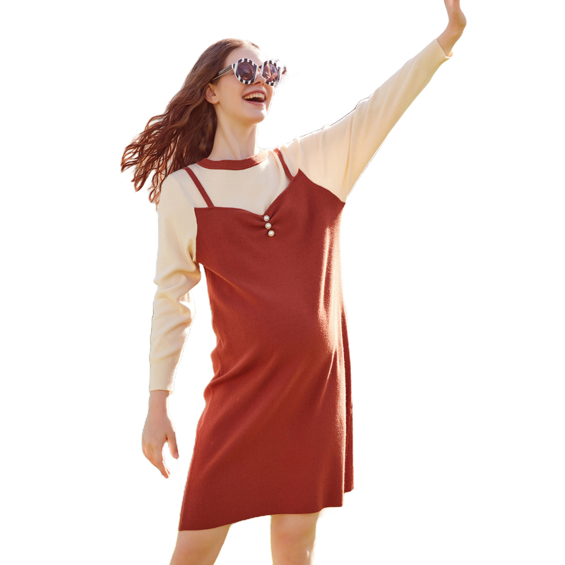 Платье для кормящих грудью, трикотажный комплект, юбка, лонгслив для выхода на улицу, изысканный стиль