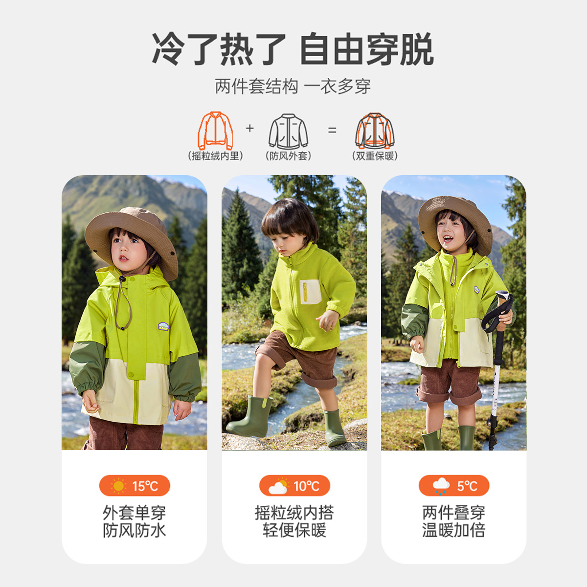 Детская демисезонная ветрозащитная водонепроницаемая куртка для мальчиков, «три в одном»