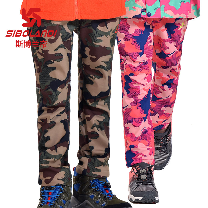 斯博兰帝 Детские дорожные флисовые удерживающие тепло камуфляжные штаны для мальчиков, подходит для подростков, увеличенная толщина
