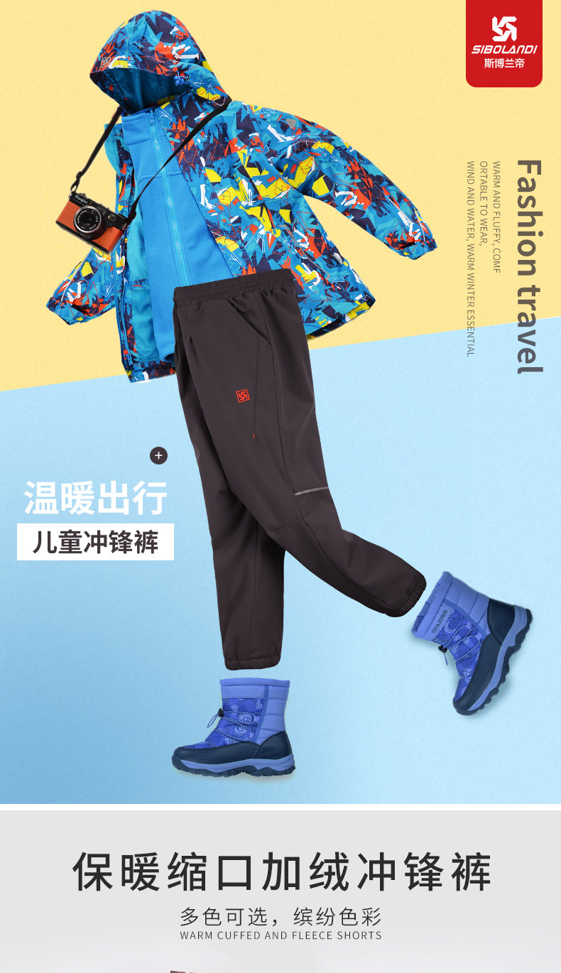斯博兰帝 Детские дорожные утепленные ветрозащитные штаны для мальчиков