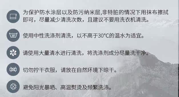 Не используйте ультра -белый чистый белый моющие средства, потому что они содержат определенный отбеливатель, который повредит водонепроницаемую мембрану и повлияет на общий тип одежды!