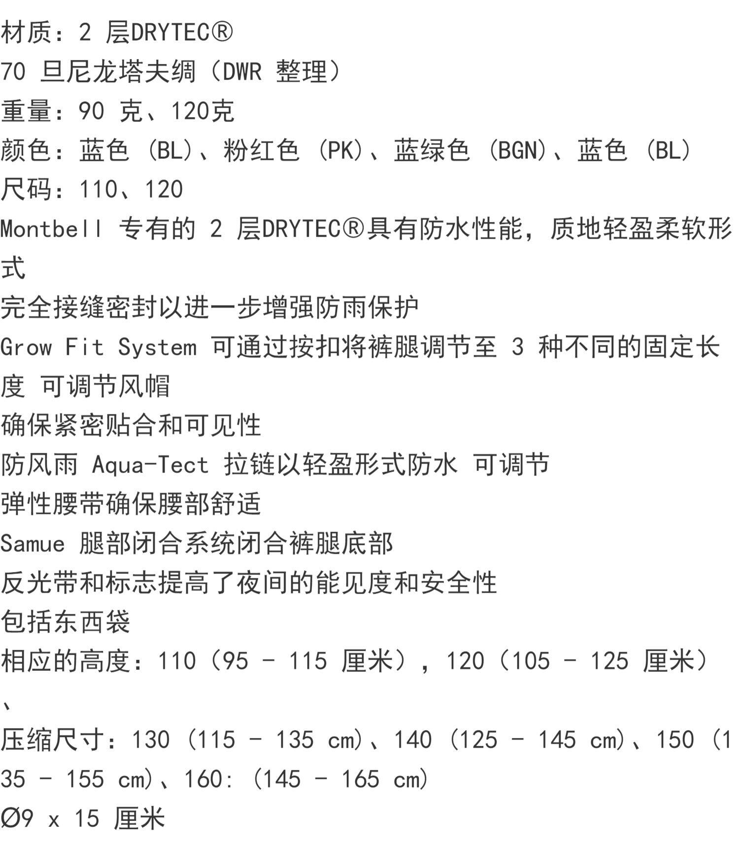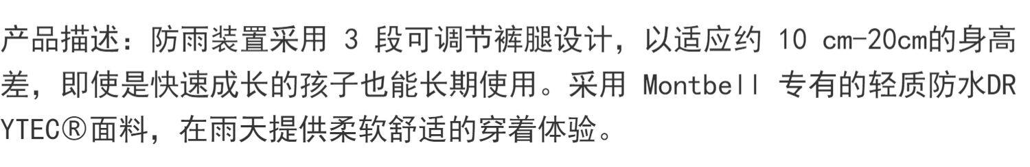 Япония покупает Montbell Children Leat Fit Fit klepper Зарядные штаны 110-160 Водонепроницаемы