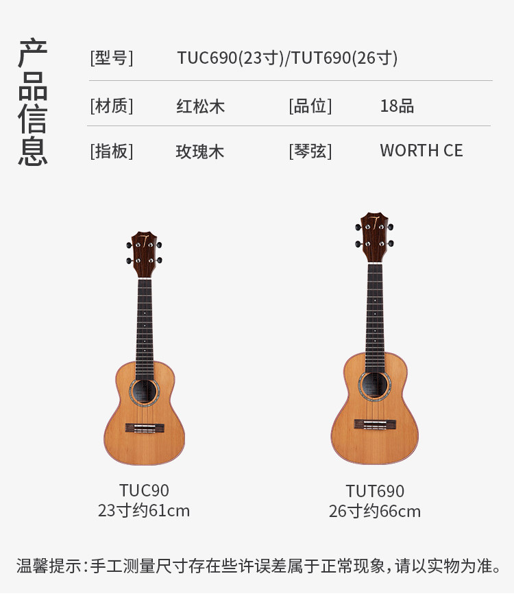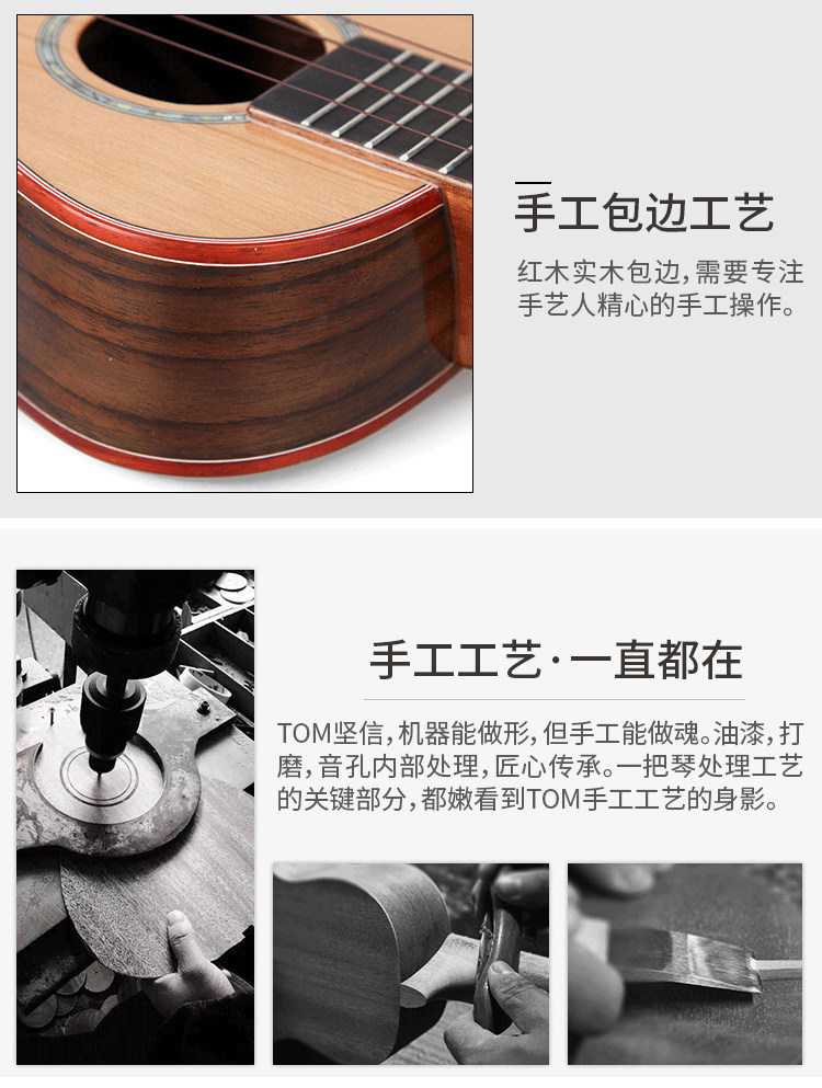 Tom Ukulele Yuxili Red Pine Board Ukili Гавайская гитара TUC690 Профессиональная работа