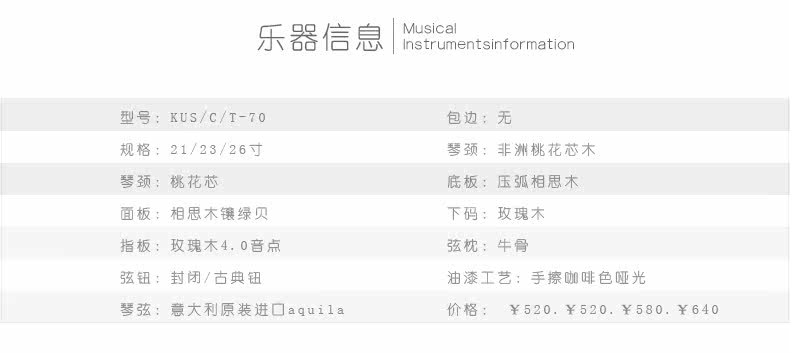 Kaka Ukulele 70 Series Acacia Hawaii Guitar