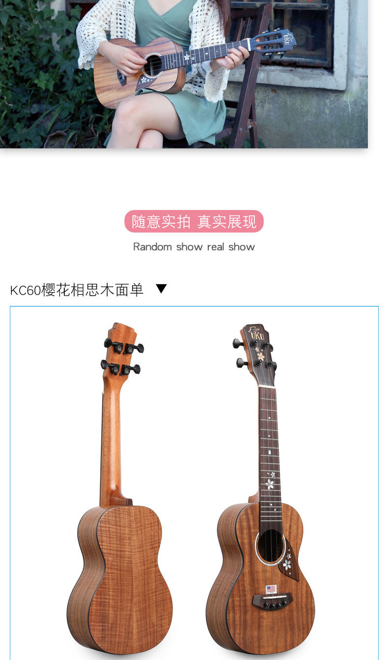 uku Yuxili 23 -inch Cherry Blossom KC60 Начало детей Acacia Wood Platform Advanced 26 -INCH Uкалеле