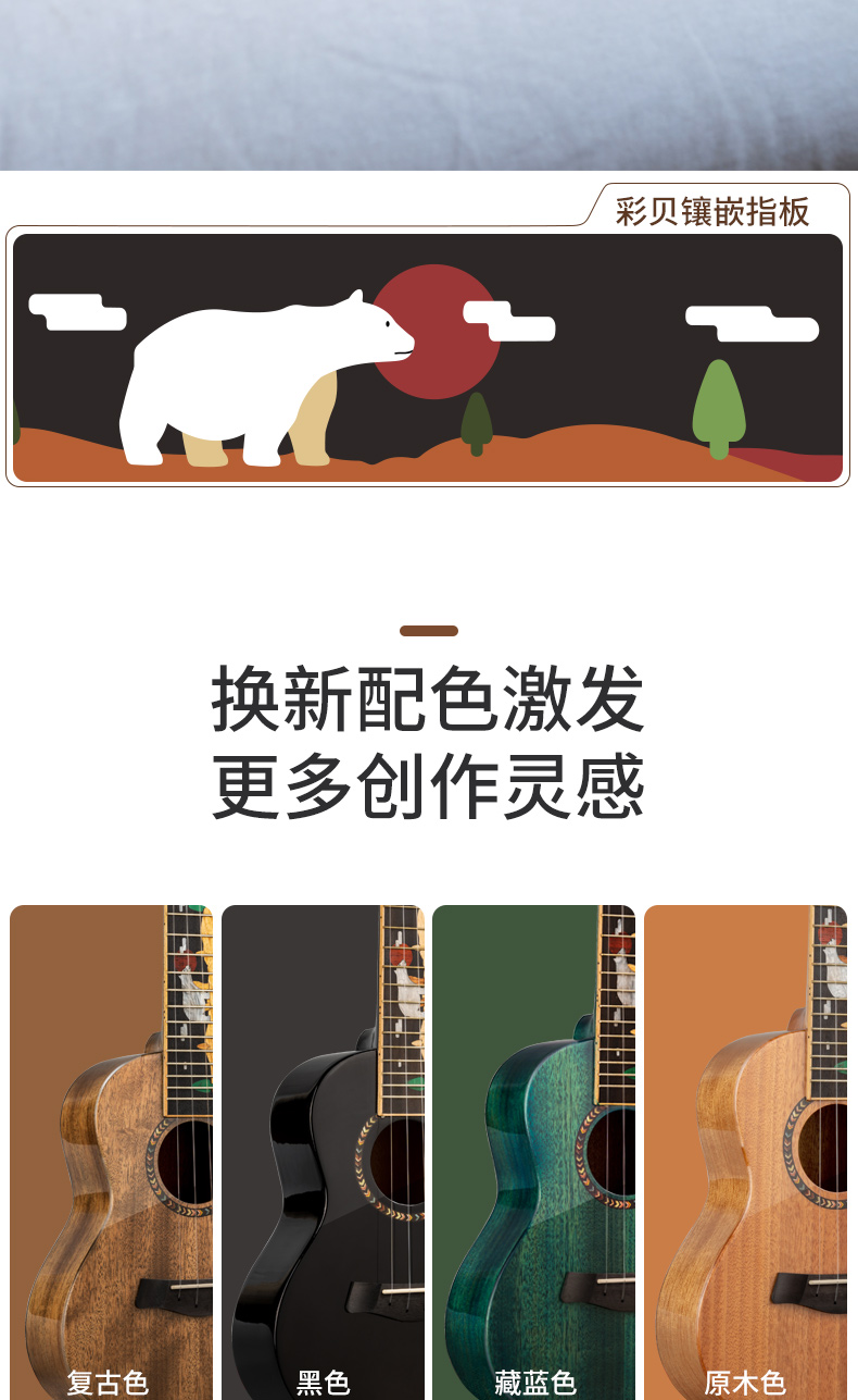 Укулеле с партитурой для начинающих, гитара, полярный медведь, 23 дюймов