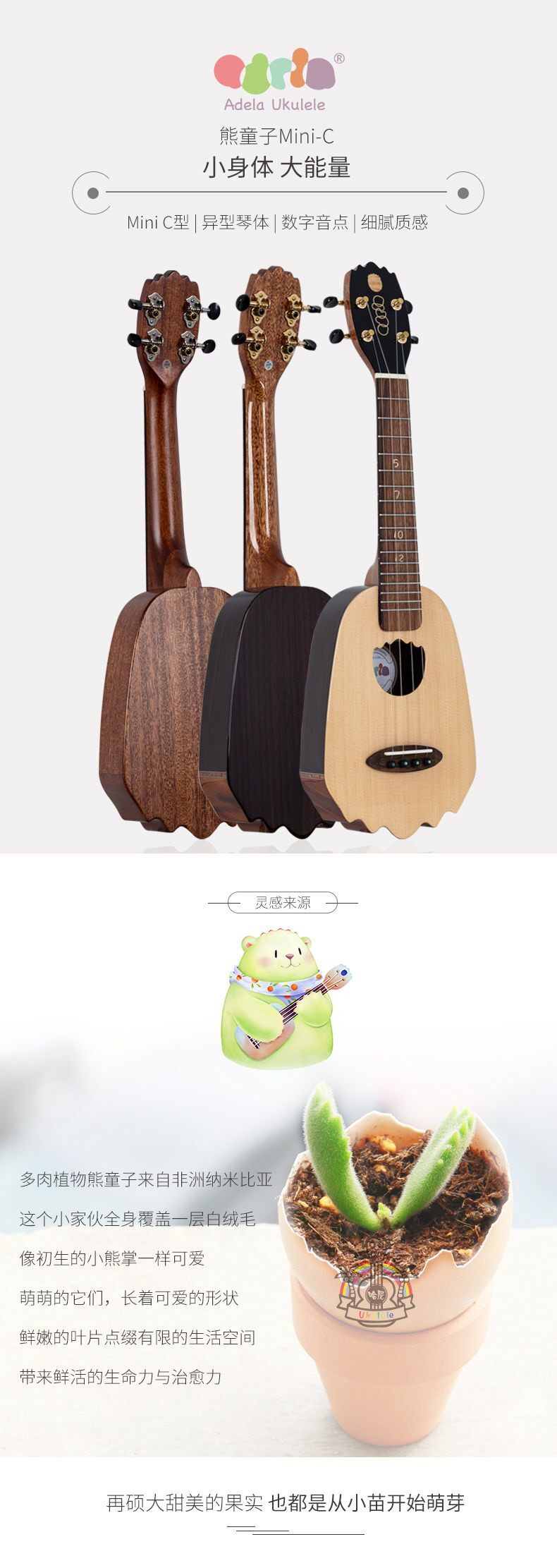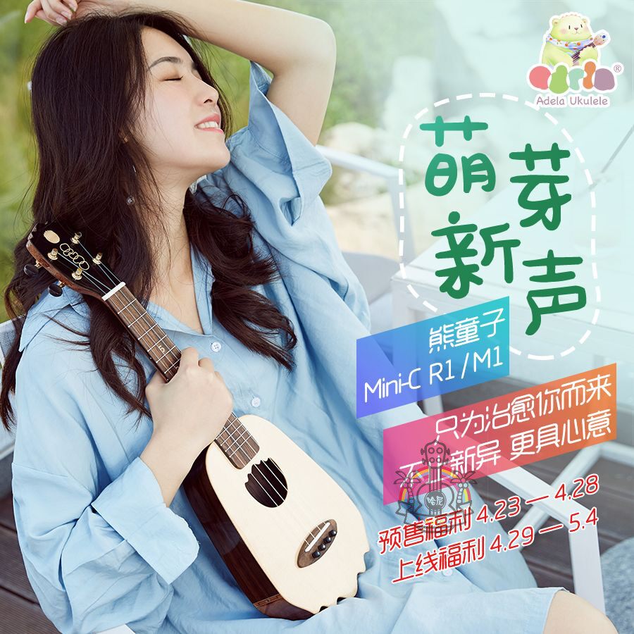 Adela Bear Boy Full Vane Ukulele Mini C Peach Blossom Core 2024 Hani Spot