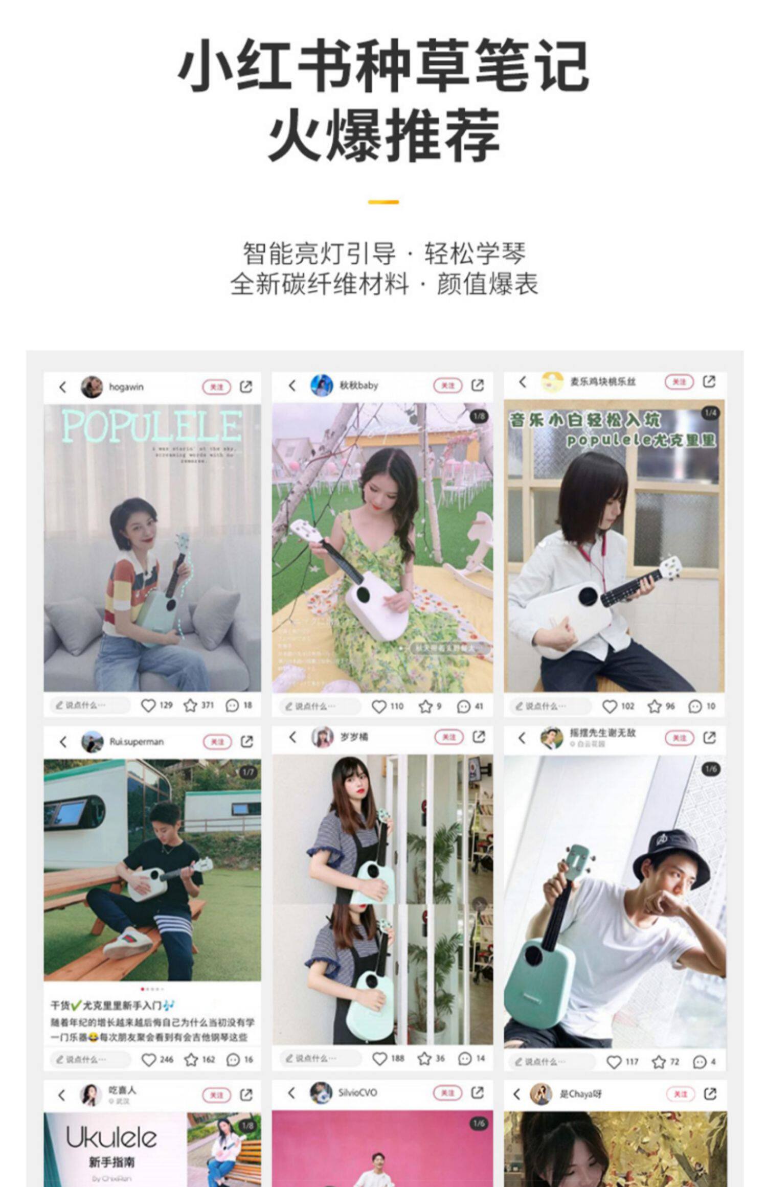 Умное укулеле с партитурой для начинающих, гитара из углеродного волокна