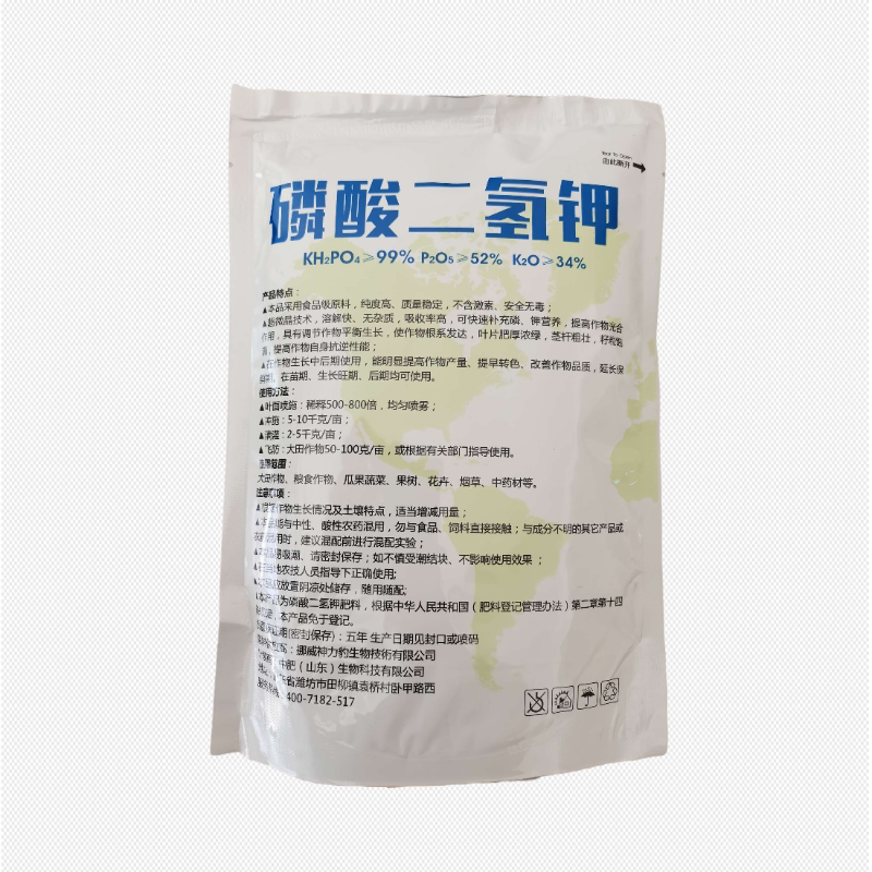 Спрей до и после цветения: способствуйте дифференциации цветочных бутонов, увеличивайте количество цветов, укрепляют цветочные пород, укрепляют цветы, чтобы поддерживать фрукты, улучшить обстановку фруктов, а также могут эффективно способствовать росту и развитию корней и способствуют созреванию урожая заранее. Поскольку высокий дигидрофосфат калия с высокой точностью имеет меньше водных веществ, его можно использовать различными способами, включая опрыскивание, орошение, погружение, пересадку, замачивание, смешивание семян и применение основания.