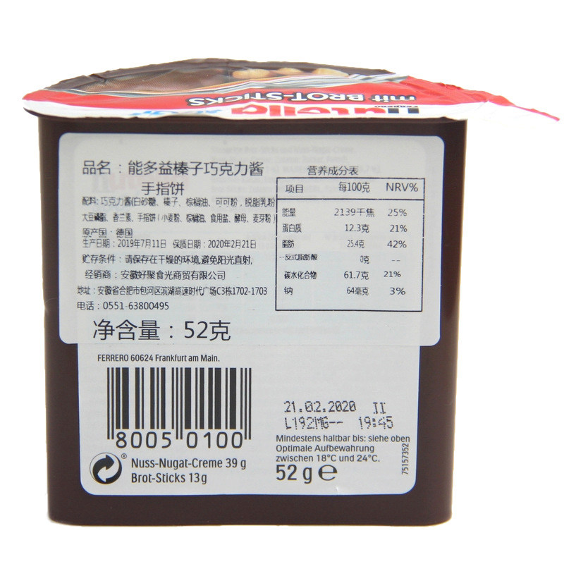 Германия импортированная закуска Ferrero nutella может быть в состоянии умножить лесоматериал из шоколадного соуса, бисквит 52 г, 52 г