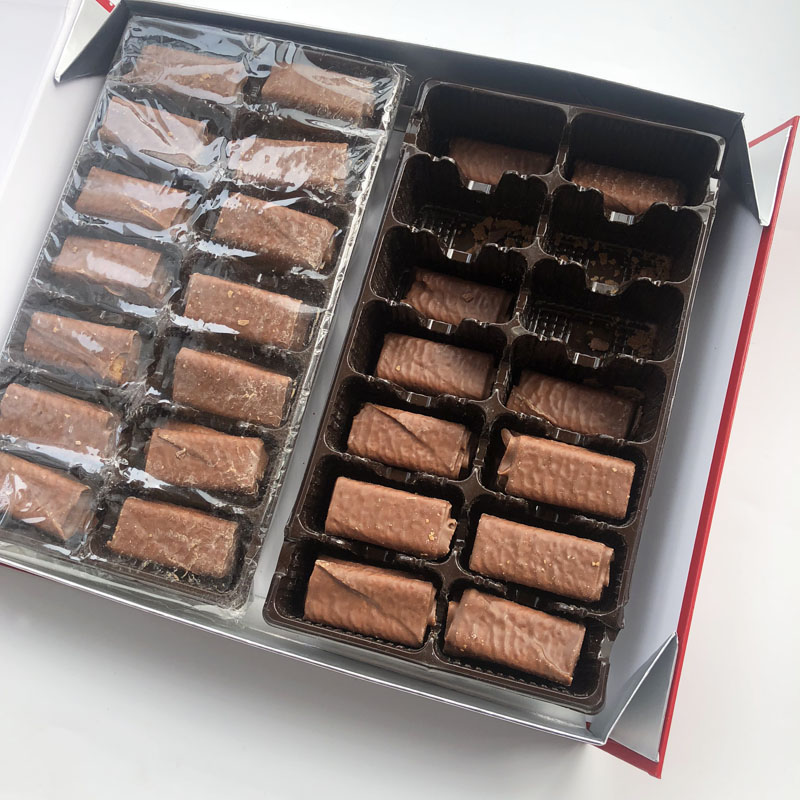① Транспортное сжатие столкновения может привести к деформированию или открытию коробки ②Шоколадные яичные булочки хрустящие и хрупкие, легко таять