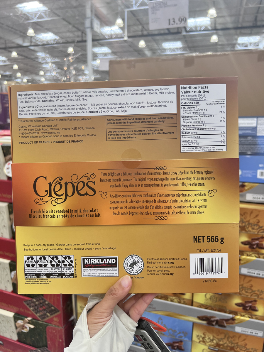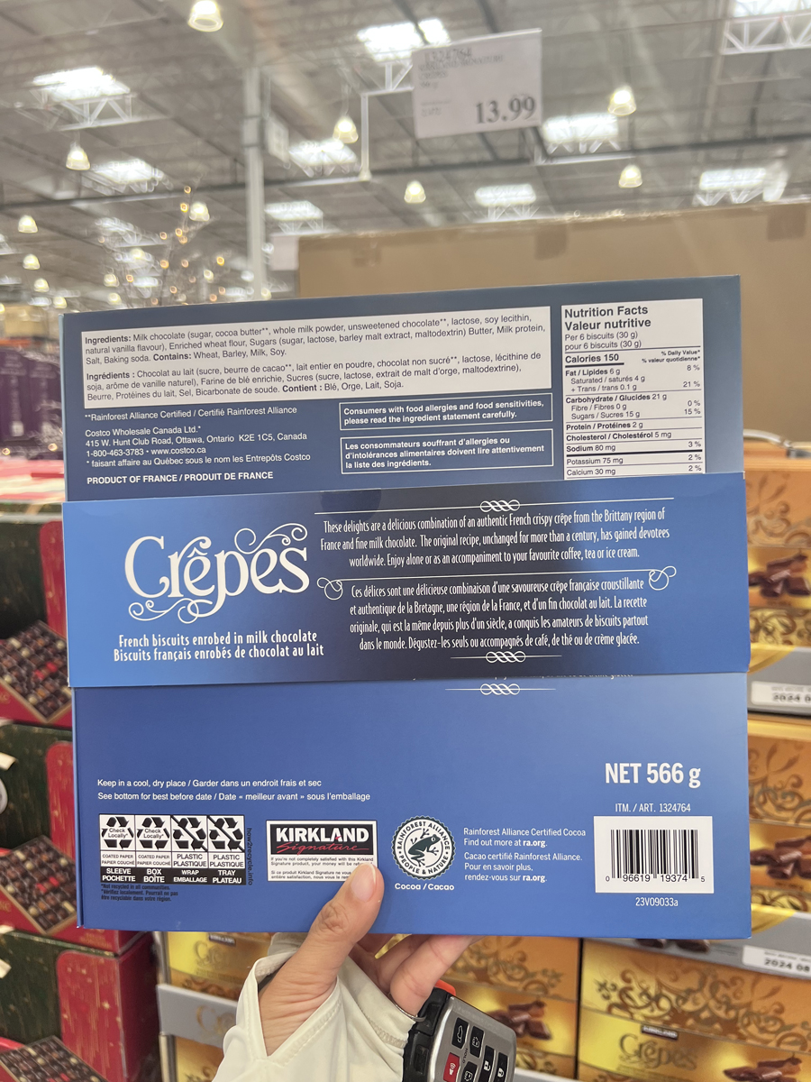 Spot Canada Kirkland Brepes Бельгийский шоколадный хрустящий печенье яичное печенье 566G