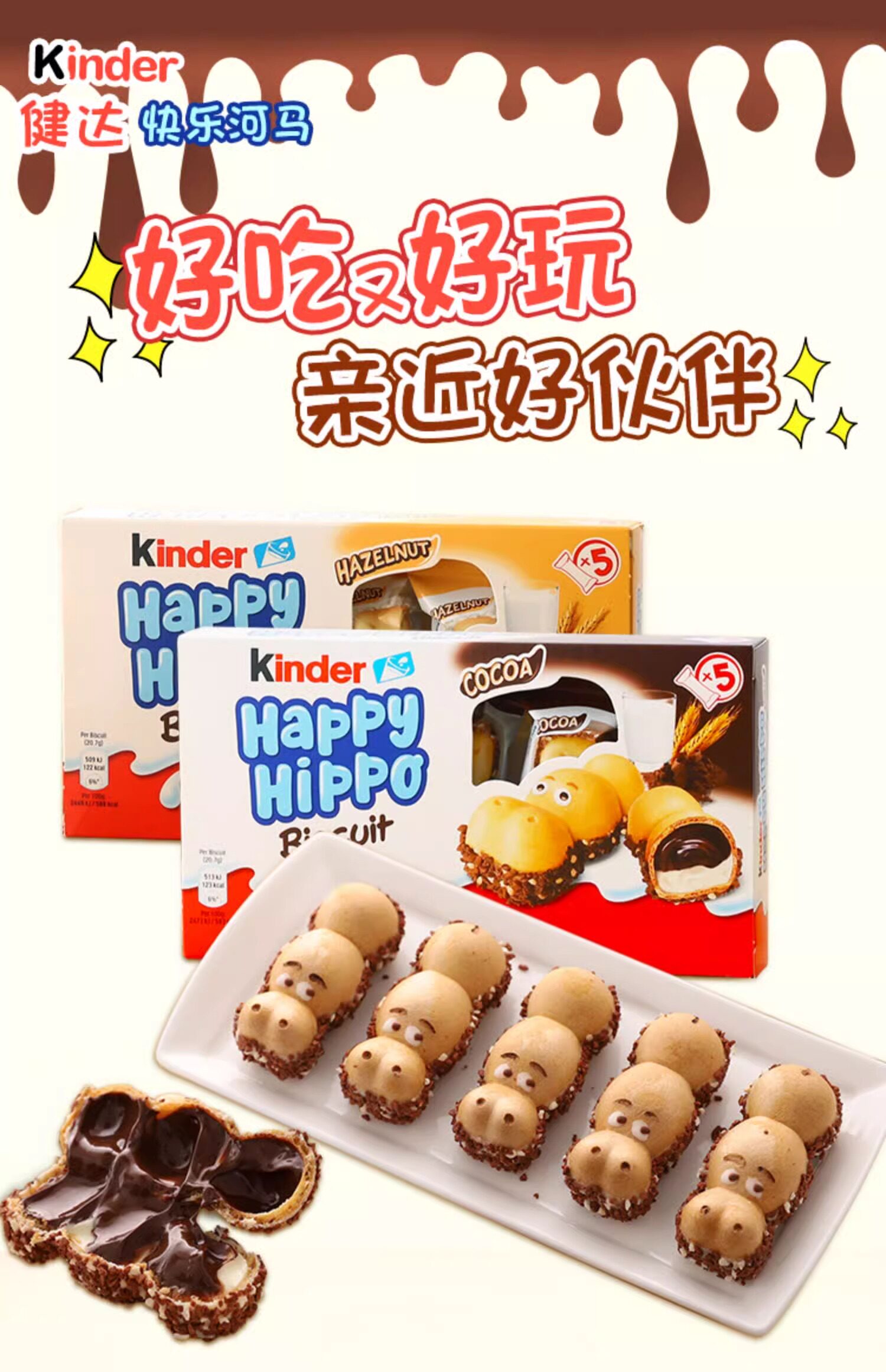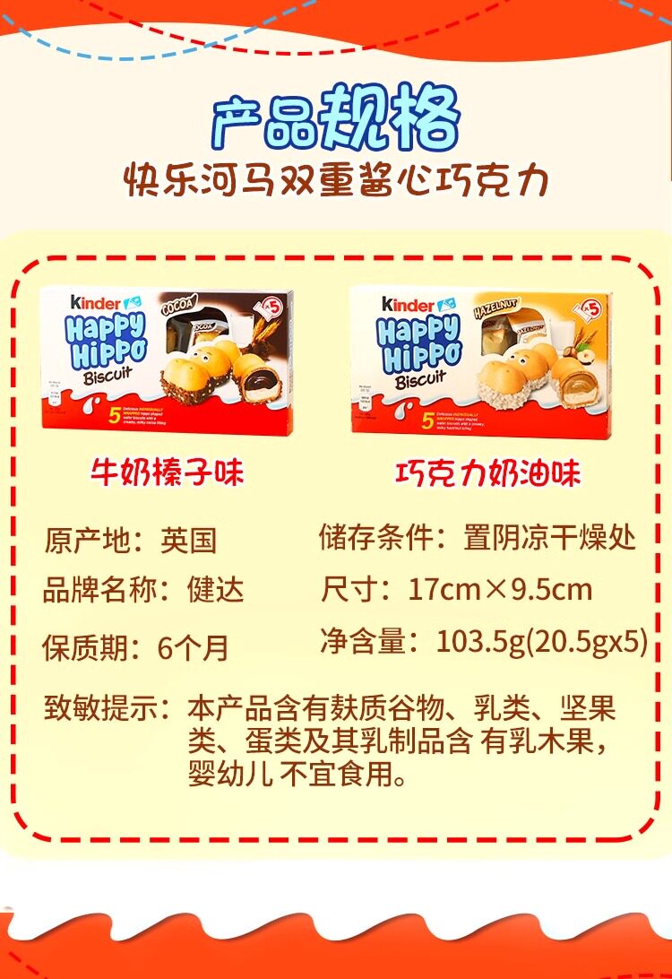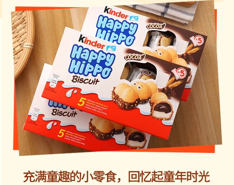 Импортное печенье Kinder Happy Hippo, шоколадное молоко, сэндвич с фундуком, небольшие закуски, оптовая продажа на Новый год
