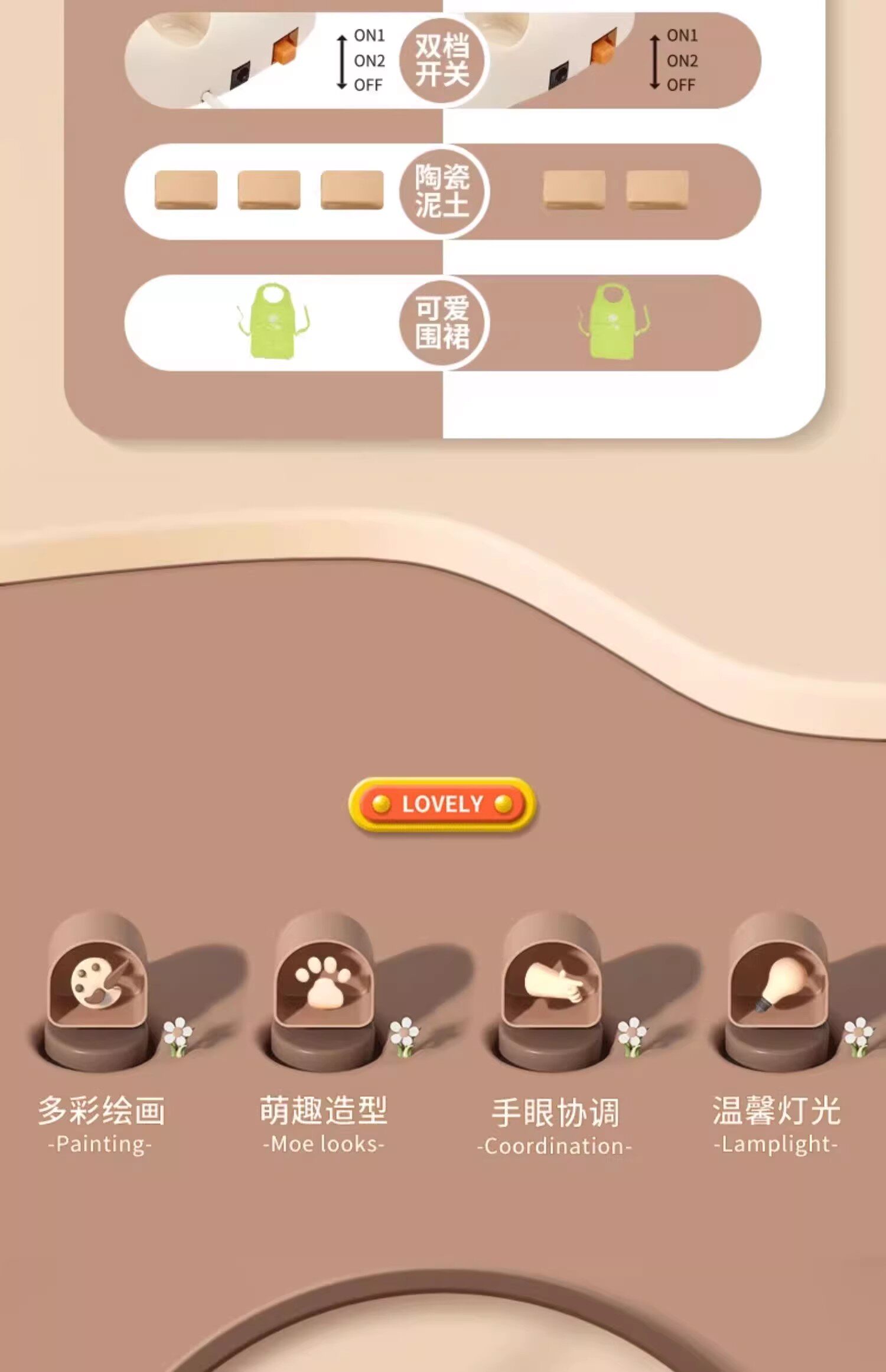 - Базовая подарочная коробка, глина, линейка, пигментированный фартук