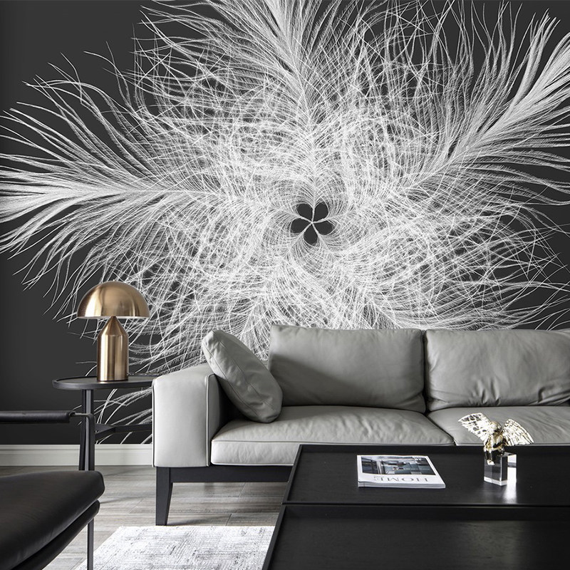 Poner 1㎡ Пользовательская роспись современные перья снежные бархатные цветочные спальня спальня кровати фона стены стены стены стены, нордические обои цветут