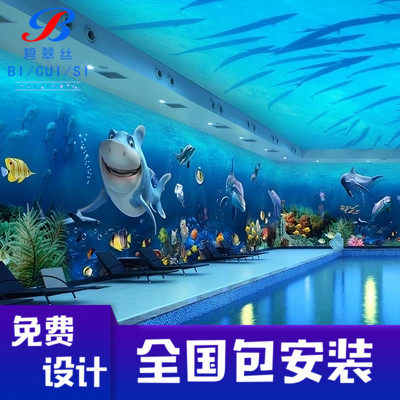 3d Трехмерные подводные мировые роспись детское бассейн Обои для детской комнаты потолочные потолочные обои морские стены ткань