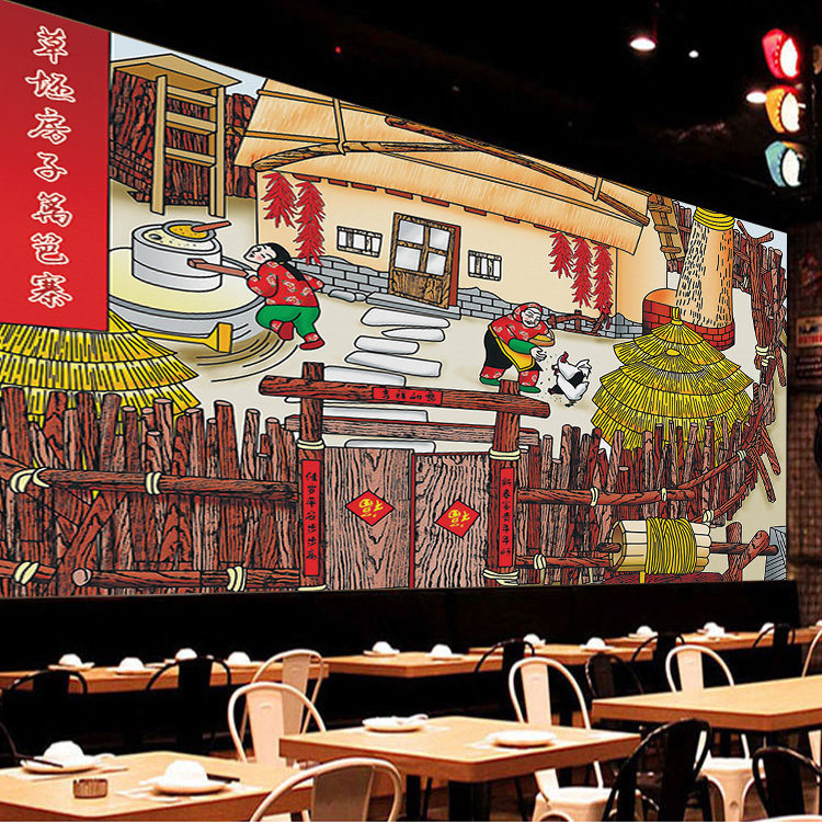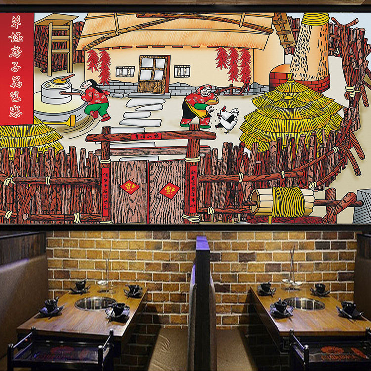 Северо -восток восьми монстров травы пустые дома ограждения деревня обои на ферме отель декоративная настенная ткань северная деревня деревня холст