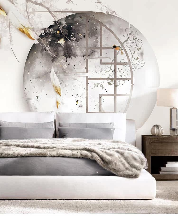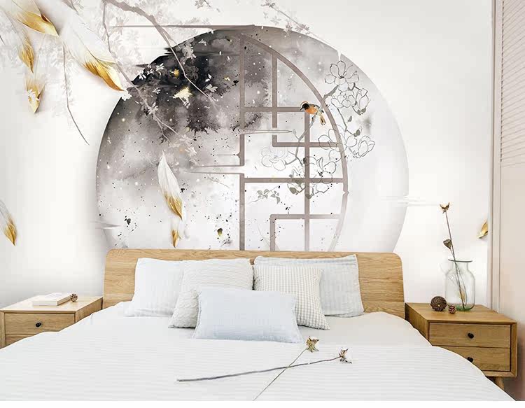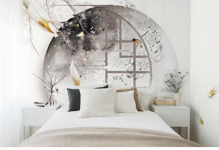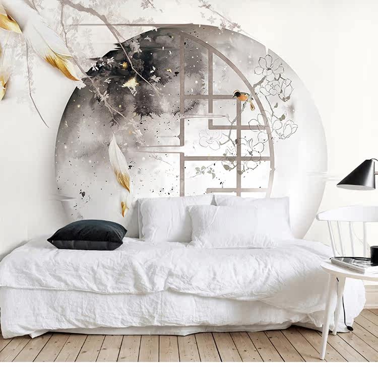 蕊西 Новая китайская телевизионная настенная настенная ткань классическая ретро -мибаге 3d бумага Китай Обои Ветр Обои Древняя стена