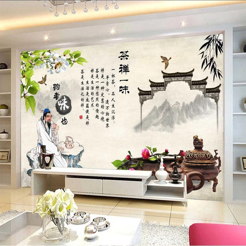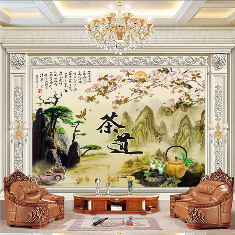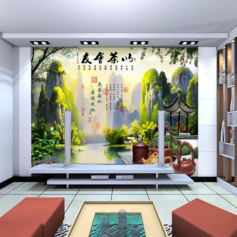 Китайский стиль Гийлин Пейзаж чайная культура чайная домика обои традиционные ностальгические чайные домики с машинами для украшения чай
