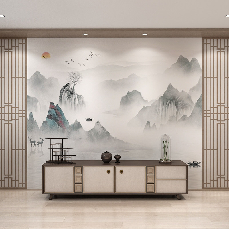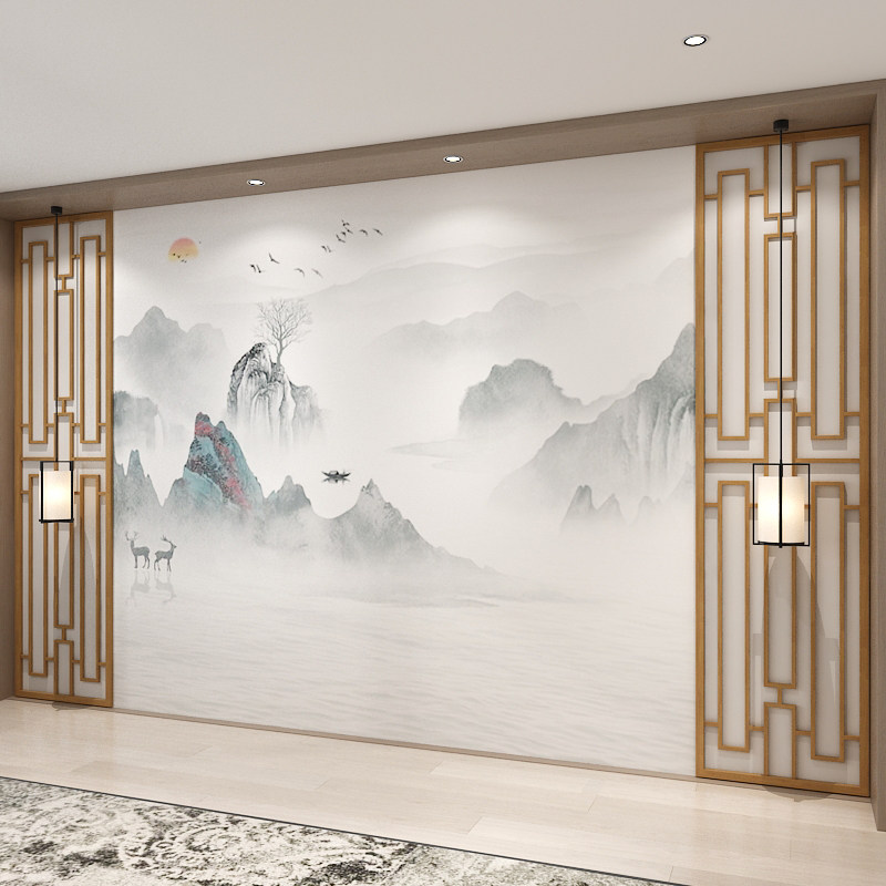 Новый китайский стиль настенный ткань телевизионный фон стены спальня гостиная диван с трехмерными рельефными обои атмосферные чернила ландшафтная роспись