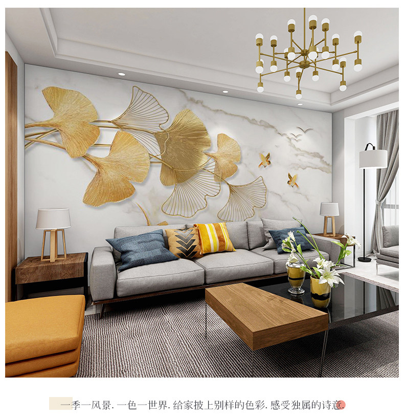 Северные телевизионные фоновые обои современные простые роскошные гинкго листья гинкго золотые листья даоли камень камень гостиная в стенах клуб