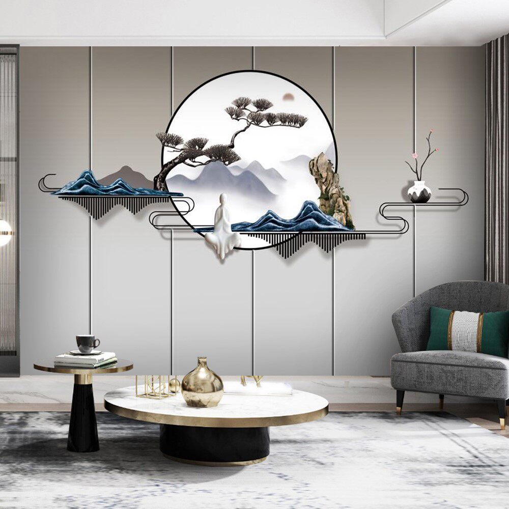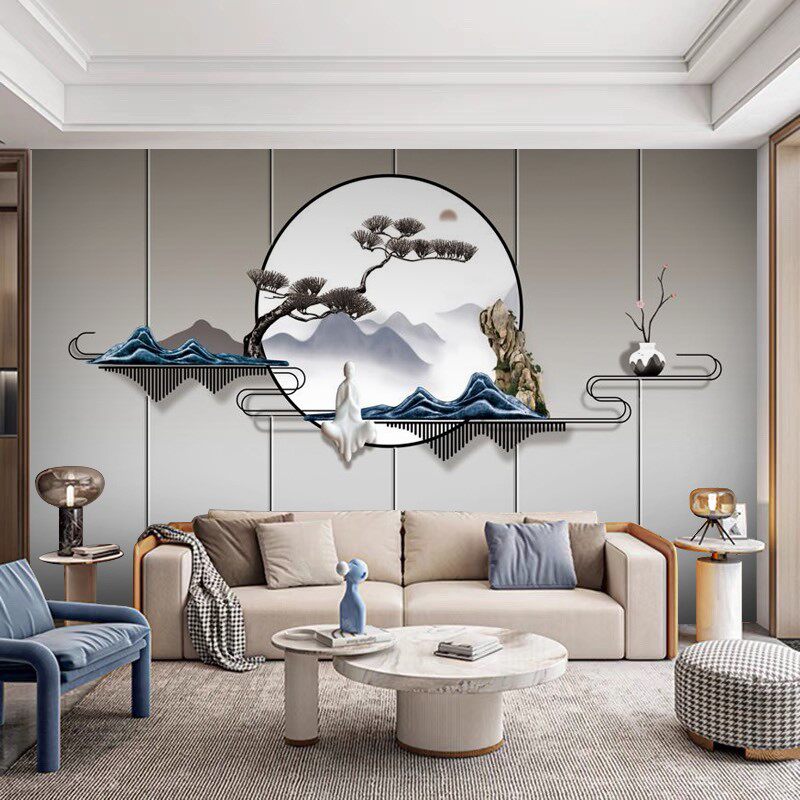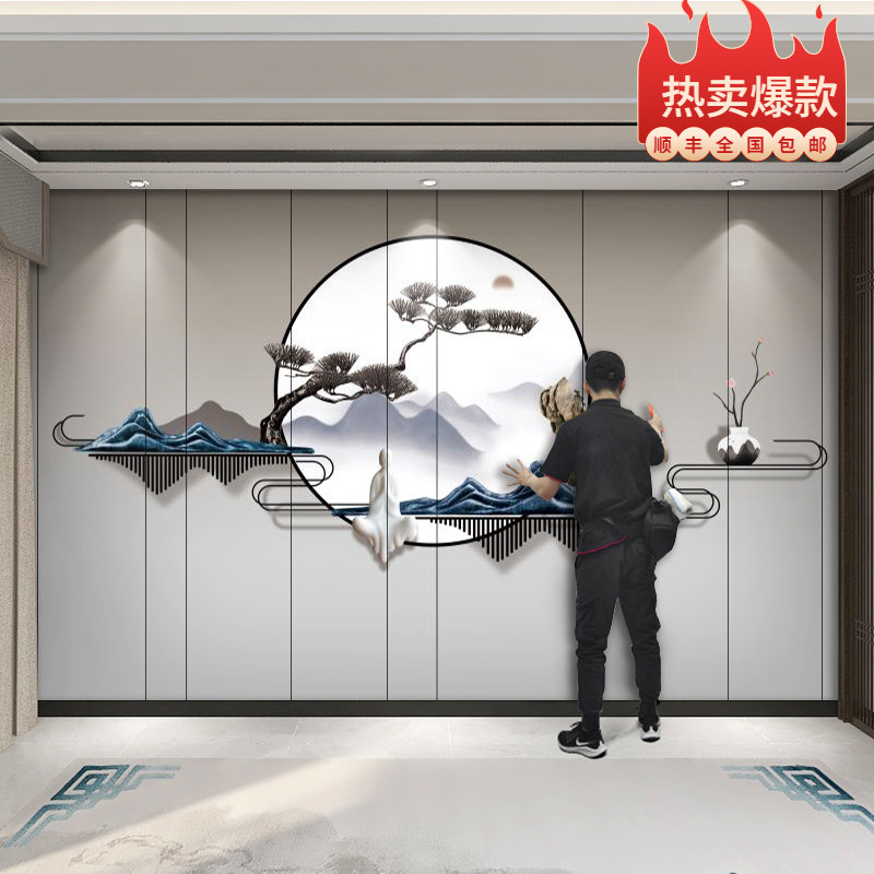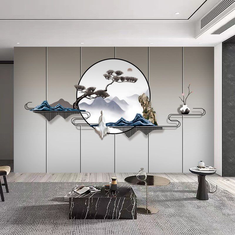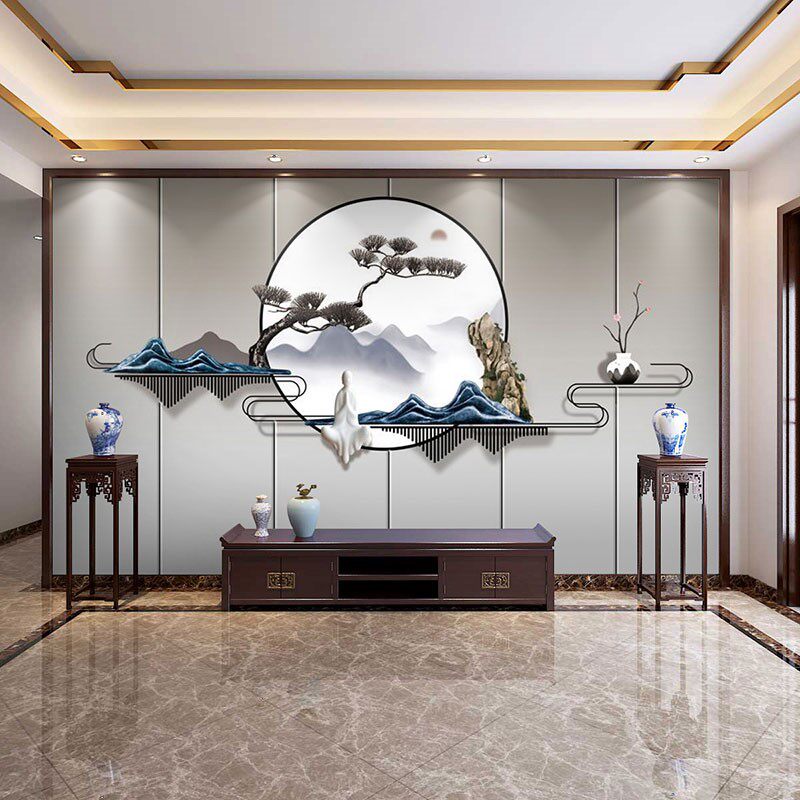 Китайский легкий роскошный пейзаж ТВ фоновый фоновый обои обои гостиная железо арт гостеприимный