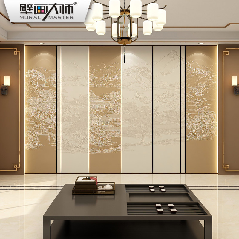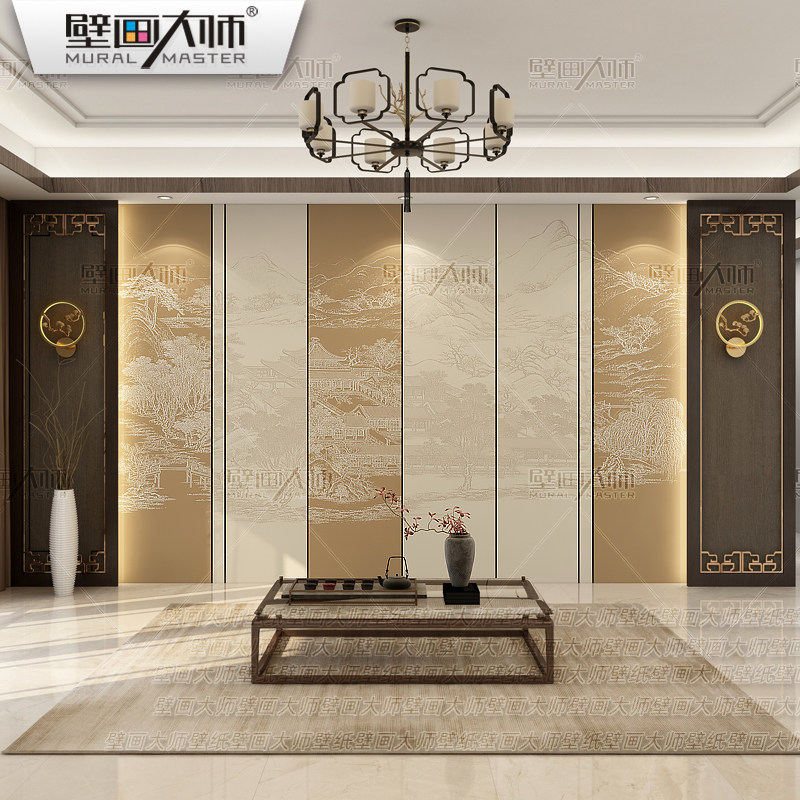 Легкая роскошь новая китайская стиль красочная пейзаж ткань ткань телевидение Фоны Обои Обои Древний стиль гостиная