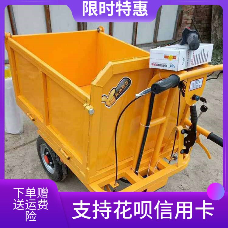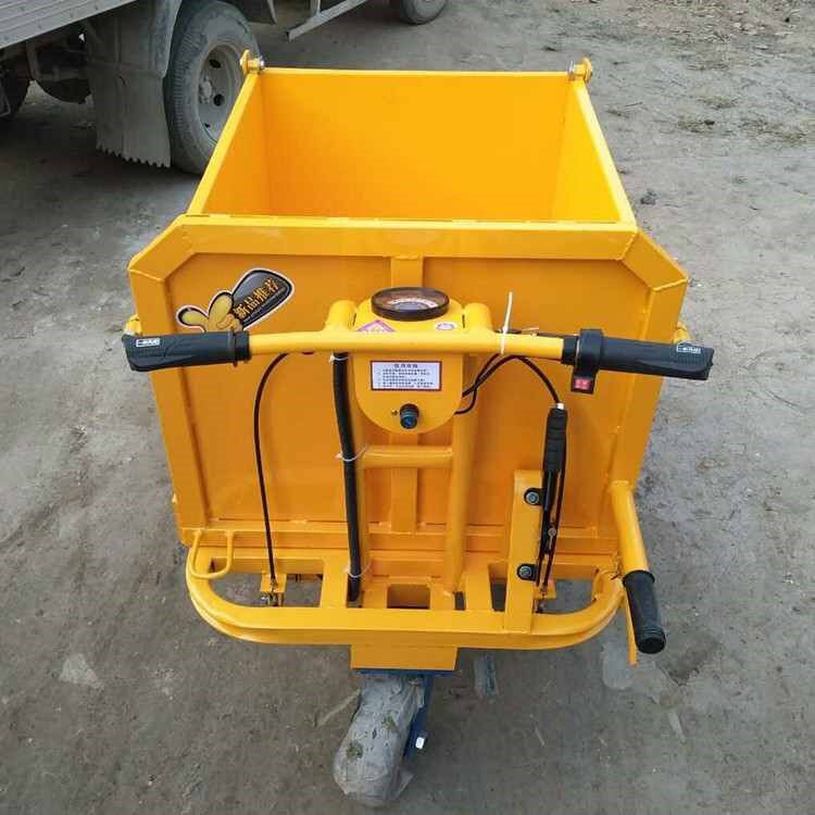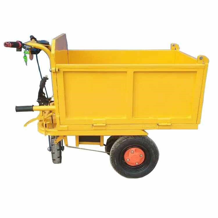 Строительная площадка с электрическим серым фруктом размножения = сад для перевозки небольших ковшовых транспортных средств, чтобы потянуть серый и протолкнуть трехколесный велосипед.
