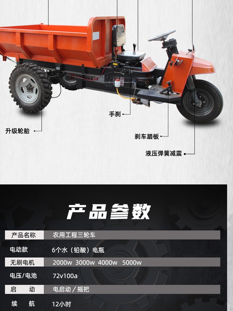 - Трехколесный велосипед с гидравлическим самосвалом мощностью 3000 Вт и задним открыванием