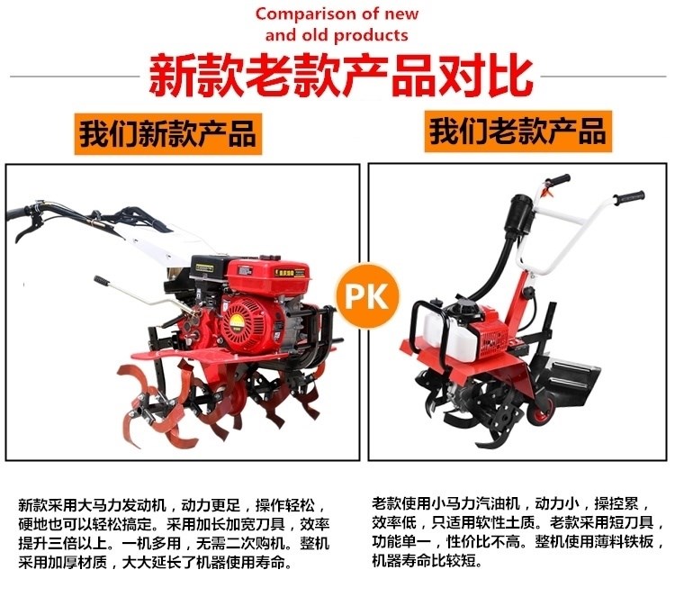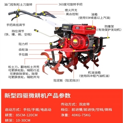 - Бензиновая модель+прямой нож+твердое колесо+железное колесо+плуг