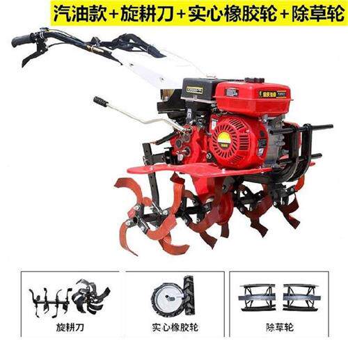- Бензиновая модель+прямой нож+твердое колесо+железное колесо+плуг