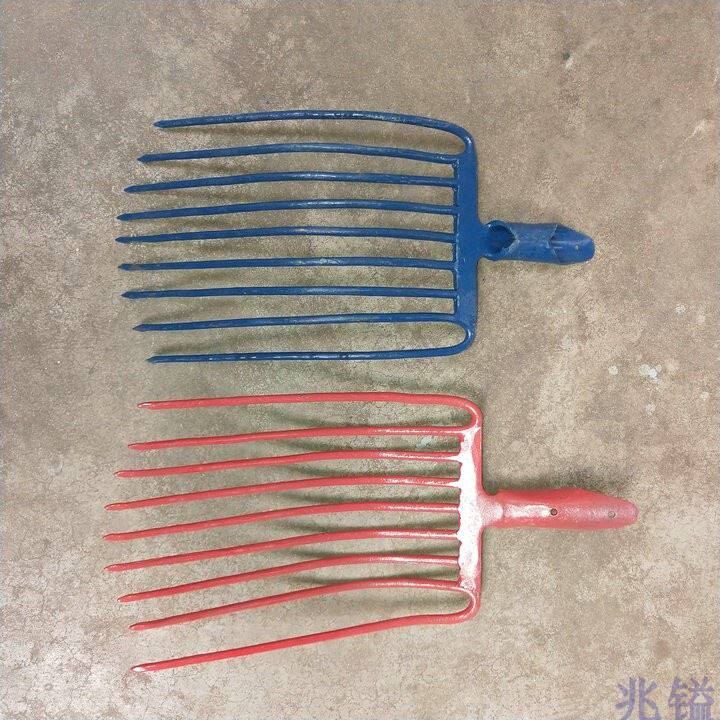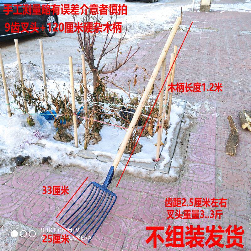 Формирование стальной вилки девять -вилочные сельскохозяйственные инструменты, травяные вилки, ферма, фермеры, большие лошади, лошади, зубы коровьего навоза, четыре целых стальные твердые фекальные вилки