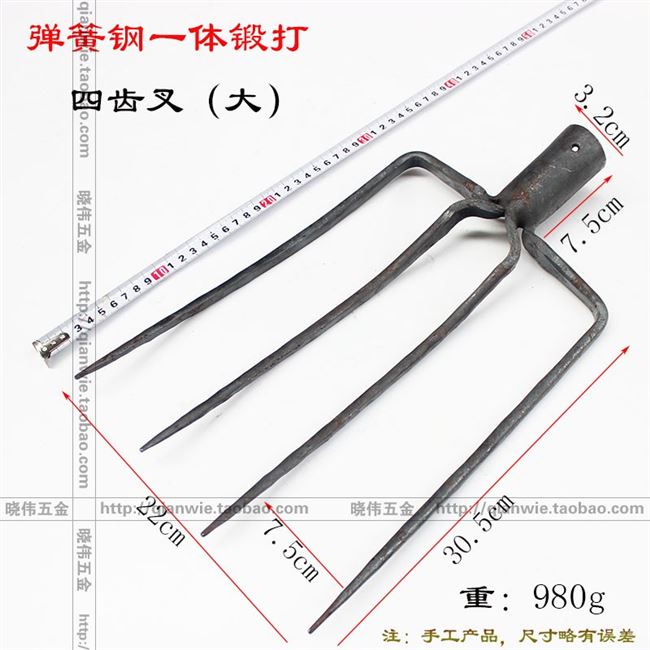 Весенняя стальная вилка с четырьмя зубами All Steel Solid Four -Stray Fork Fork Fork, Fork Forks Fork Fork, септик -вилка плюс железная трехветровая вилка сельскохозяйственная вилка