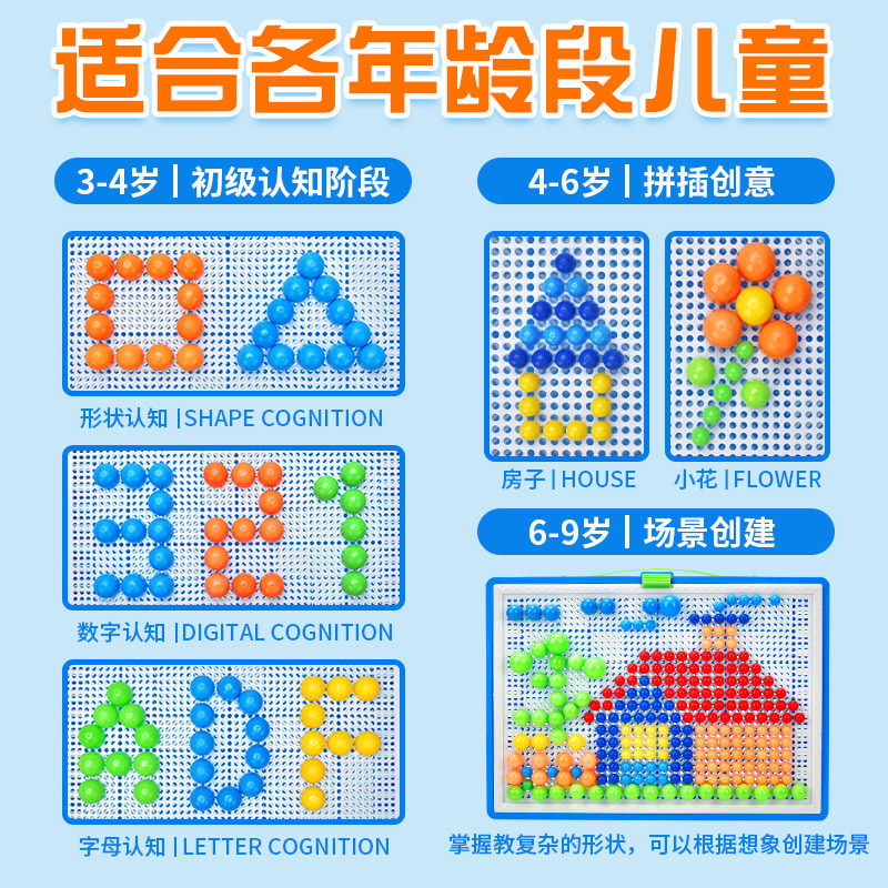Большая головоломка с грибочками-гвоздиками для детского сада, интеллектуальная игрушка для мальчиков и девочек
