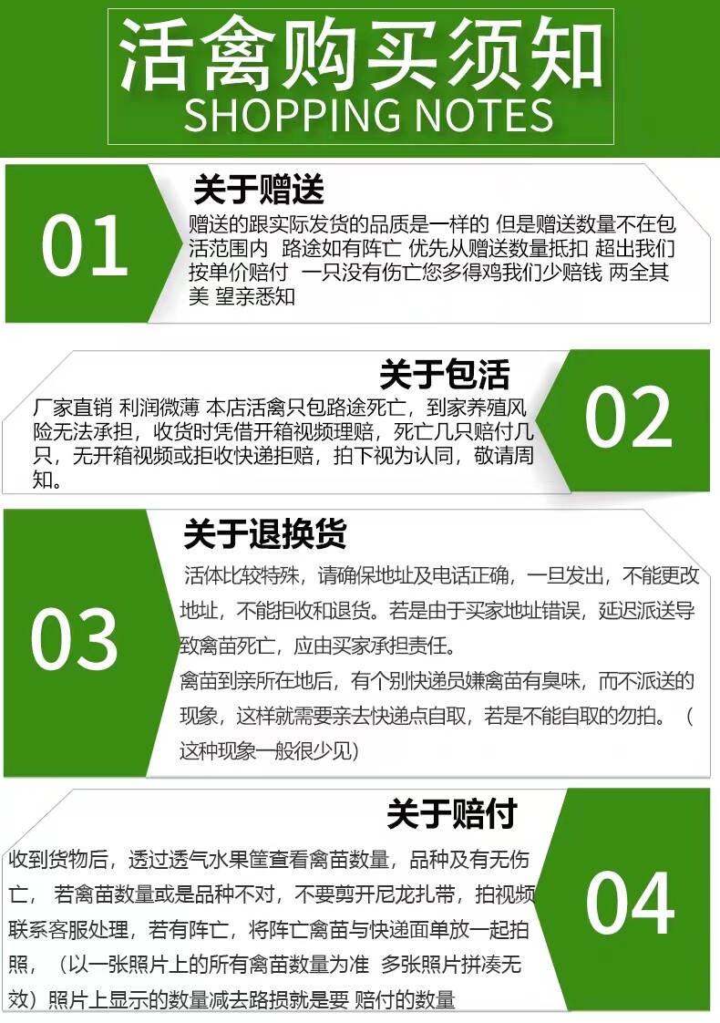 | Цвет: | Получите 1 бесплатно за 5 месячных уток-несушек с зеленой скорлупой (1 самца и 5 самок), 1-месячная утка-несушка с зеленой скорлупой получает 1 бесплатно за 5 штук (6 самок), Получите 1 бесплатно за 5 месячных уток-несушек с зеленой скорлупой (примечания для самцов и самок), 1-месячные зеленоскорлупные утки-несушки получают 2 в подарок (1 самец и 7 самок) за 6 штук., 1-месячные утки-несушки с зеленой скорлупой получают 2 бесплатно на 6 (8 самок), 1-месячные утки-несушки с зеленым панцирем получают 2 бесплатно по цене 6 (2 самца и 6 самок), 1-месячные утки-несушки с зеленой скорлупой получают 2 бесплатно за 6 штук (примечания для самцов и самок), 8 таэлей - 4 зеленых яичных утки (1 самец и 3 самки) 1 кг, 8 таэлей - 4 зеленых яйца утки (2 самца и 2 самки) 1 кг, 8 таэлей - 1 джин 4 зеленых утки (4 самки), 8 таэлей - 5 кг зеленых яичных уток (1 самец и 4 самки), 8 таэлей – 5 фунтов зеленых яичных уток (5 самок), 8 таэлей - 5 зеленых яиц, утки 1 кг (примечания для самца и самки), 8 таэлей - 6 зеленых яичных уток (1 самец, 5 самок) 1 кг, 8 таэлей - 6 зеленых яичных уток (2 самца и 4 самки) 1 кг, 8 таэлей - 6 зеленых уток (6 самок) 1 джин, 2 самки рожают молодых уток, 3 утки рожают, 6 мамочек рожающих уток |