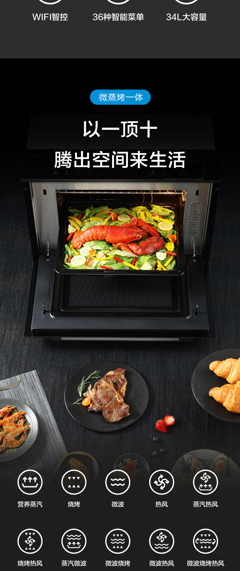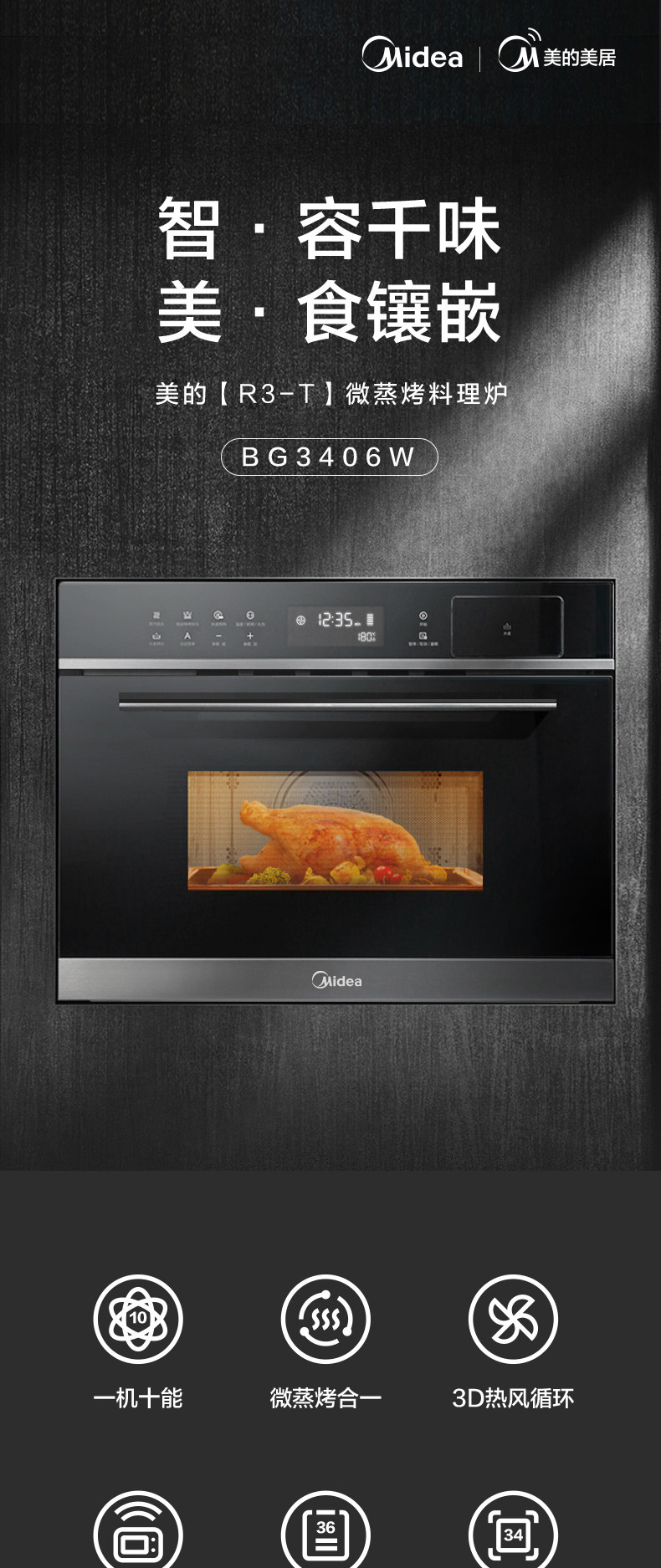 Midea R3-T-паровая на гриле на гриле все в одном в одном встроенном встроенной электрической паровой коробке Электрическая печь Микроволновая печь Три в одном интеллекту