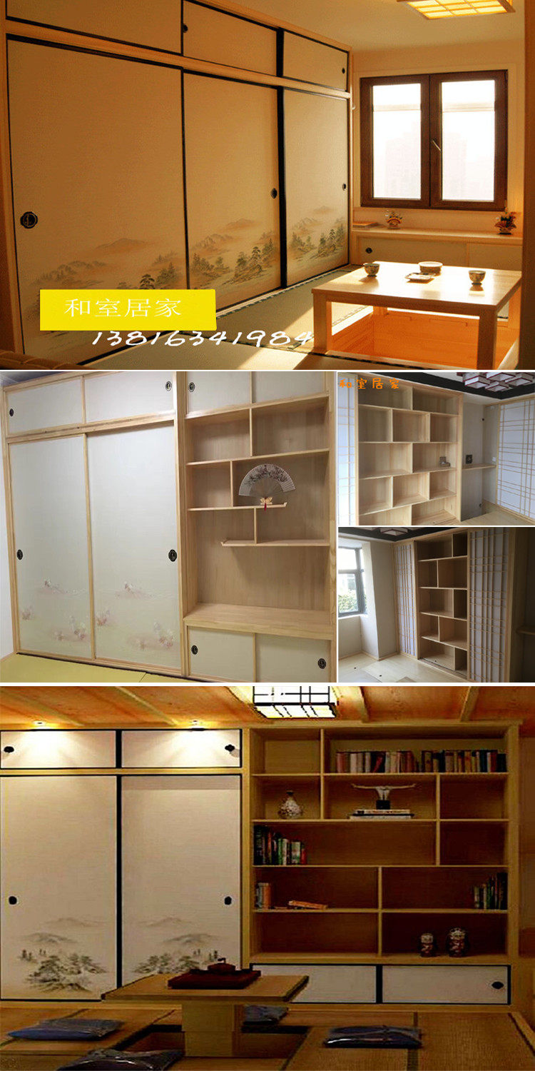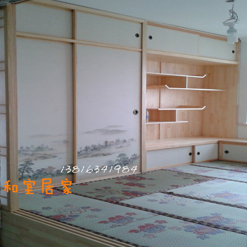 Индивидуальная японская система хранения из натурального дерева, книжный шкаф, татами