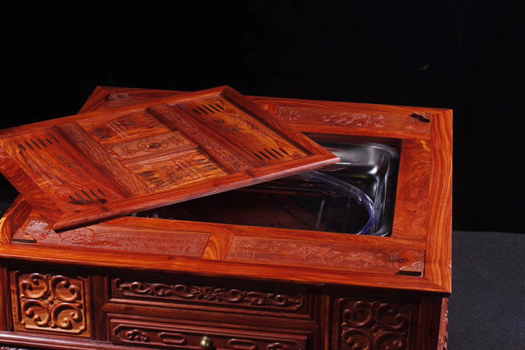 В бутике African Red Sandalwood Three используется шахматная доска, внешний вид простой и атмосферный, три использования, вы можете использоваться в качестве подноса для чая/вы можете играть в Go/Chess.Спецификация: 55*55*26 см.