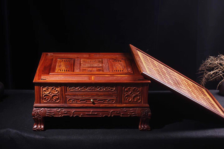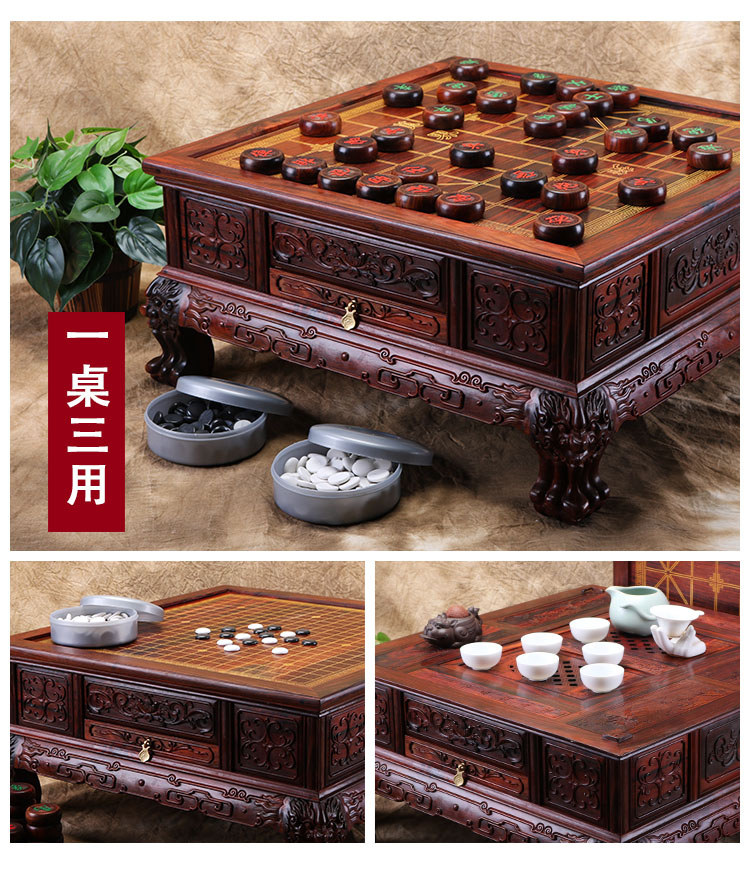 Boutique Big Red Rosewood Three -Casessboard (та же модель с красным сандаловым деревом и т. Д.) имеет простой внешний вид. Три применения могут использоваться в качестве подноса для чая/перейти к Go/Chess.Спецификация: 55*55*26 см.